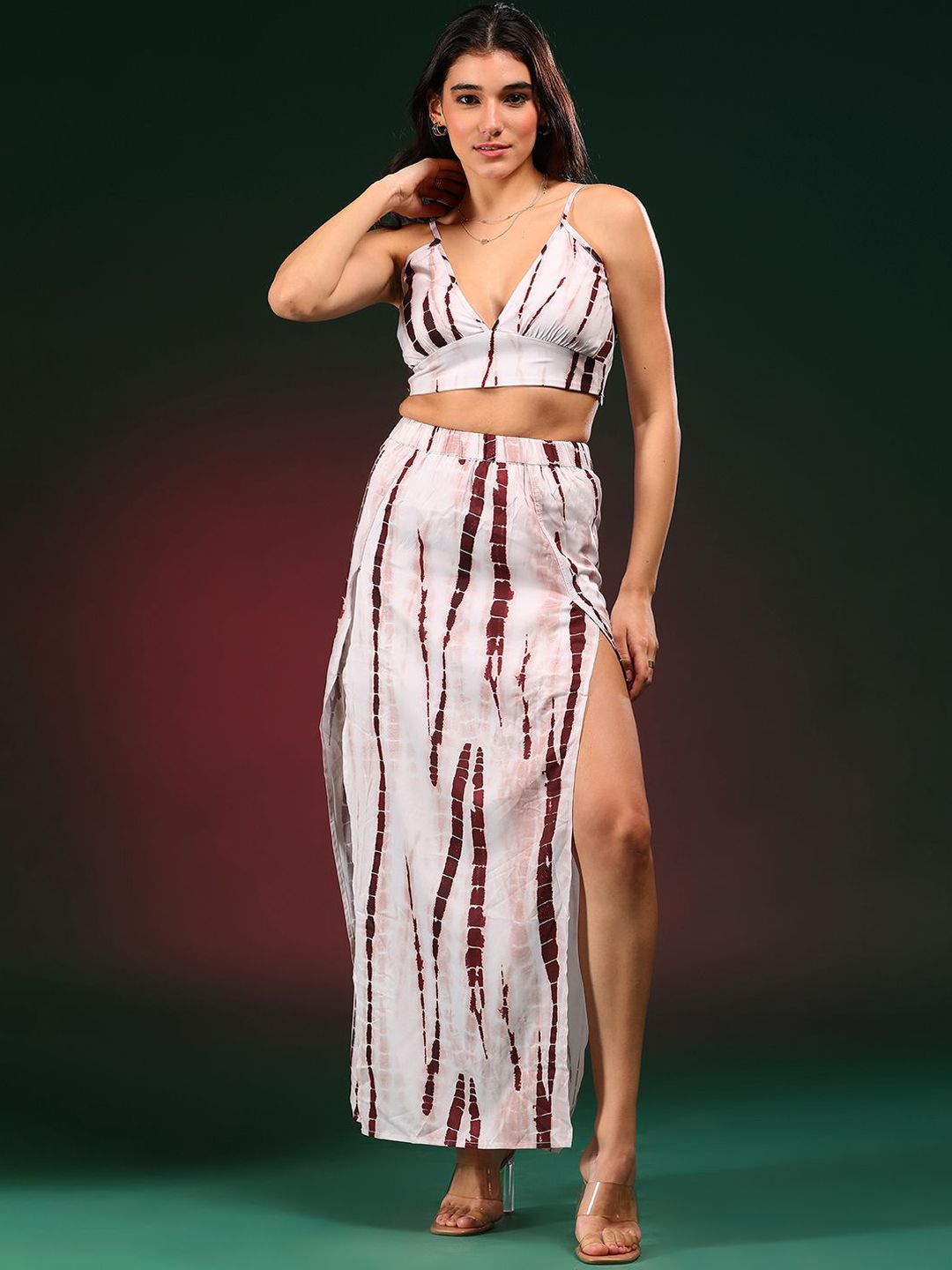 Kotty Beige Tie & Dye Shoulder Straps Top With Skirt