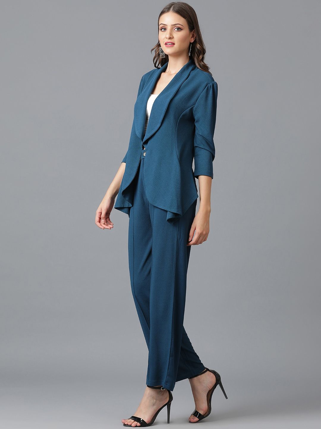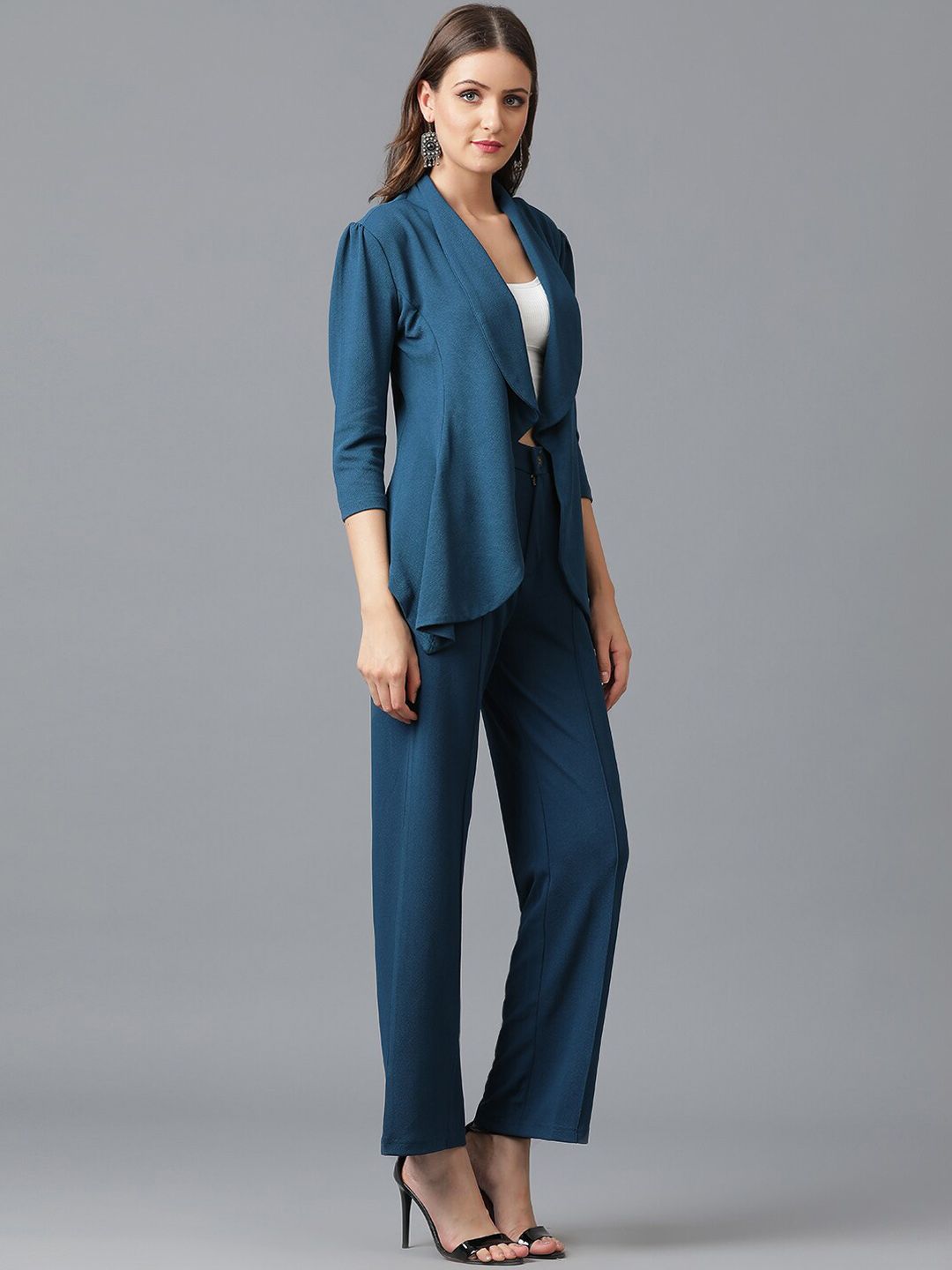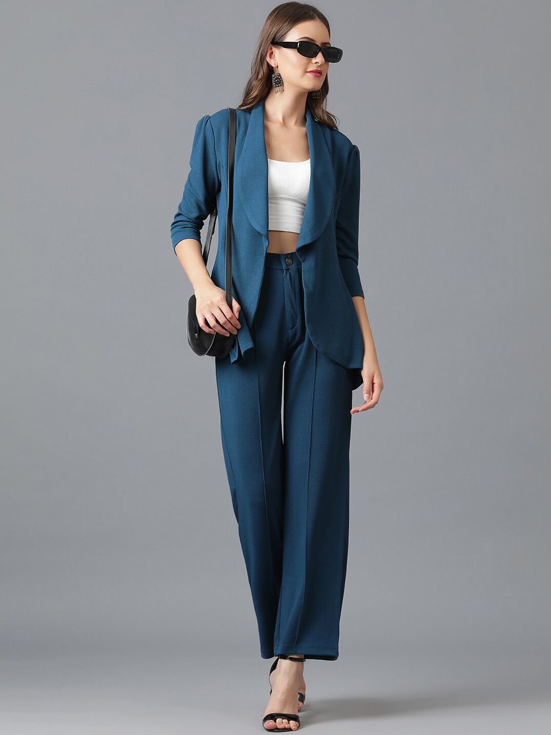 KOTTY BIZwear Green Shawl Neck Coat With Trousers