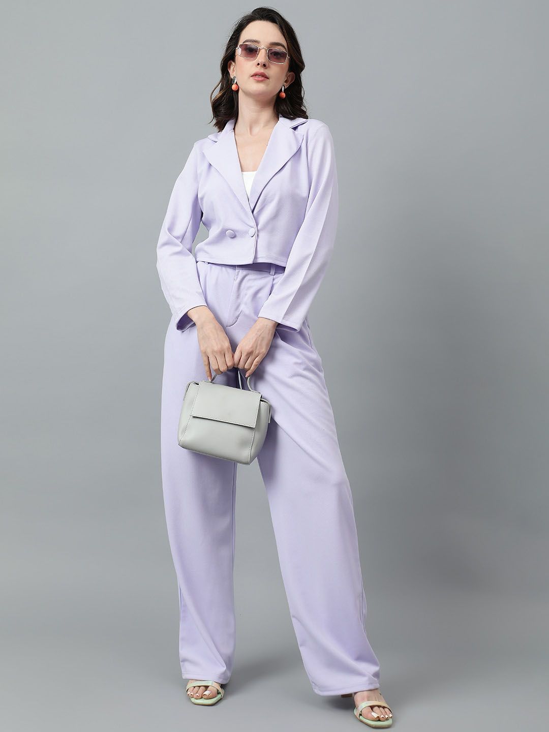 KOTTY BIZwear Purple Notched Lapel Collar Blazer & Mid Rise Trouser
