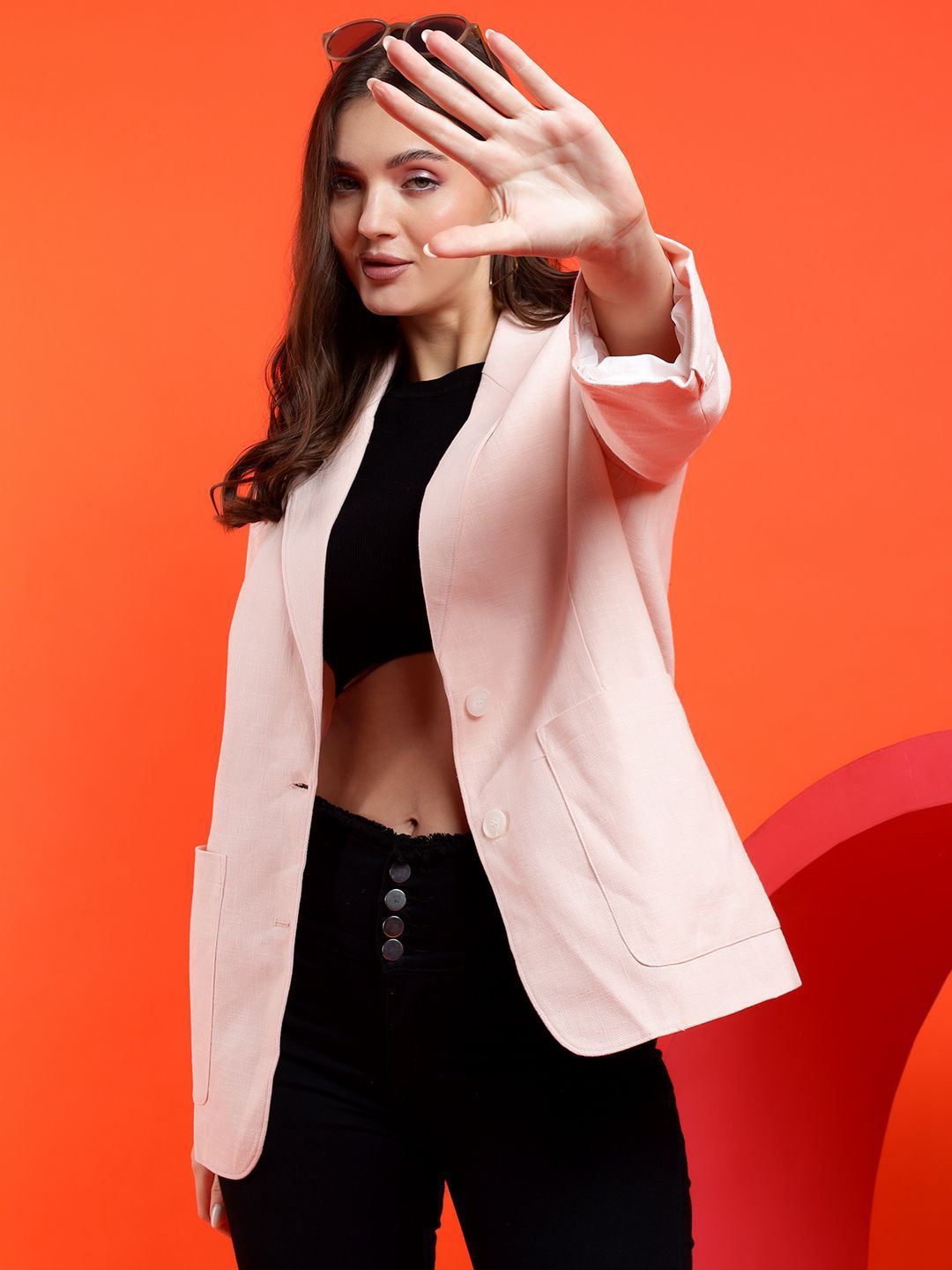 Product Details: Women Pink Solid Notched Lapel 2 Pocket Regular fit Overcoat || MATERIAL & CARE: Cotton Blend Machine Wash