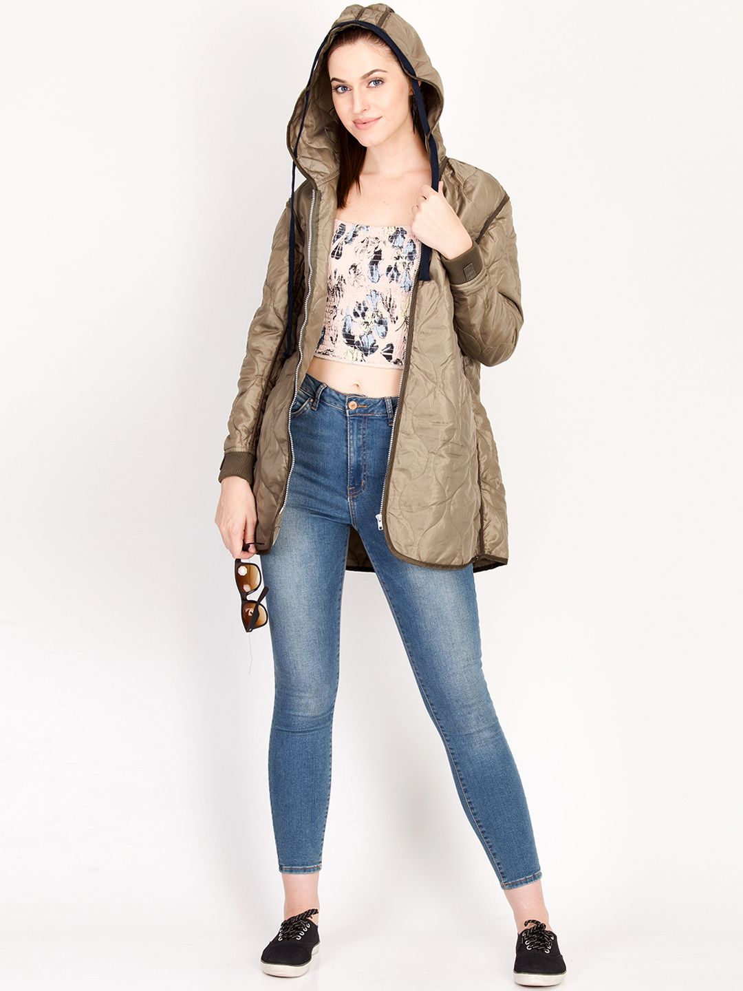 Kotty Women Brown Solid Insulator Longline Padded Jacket