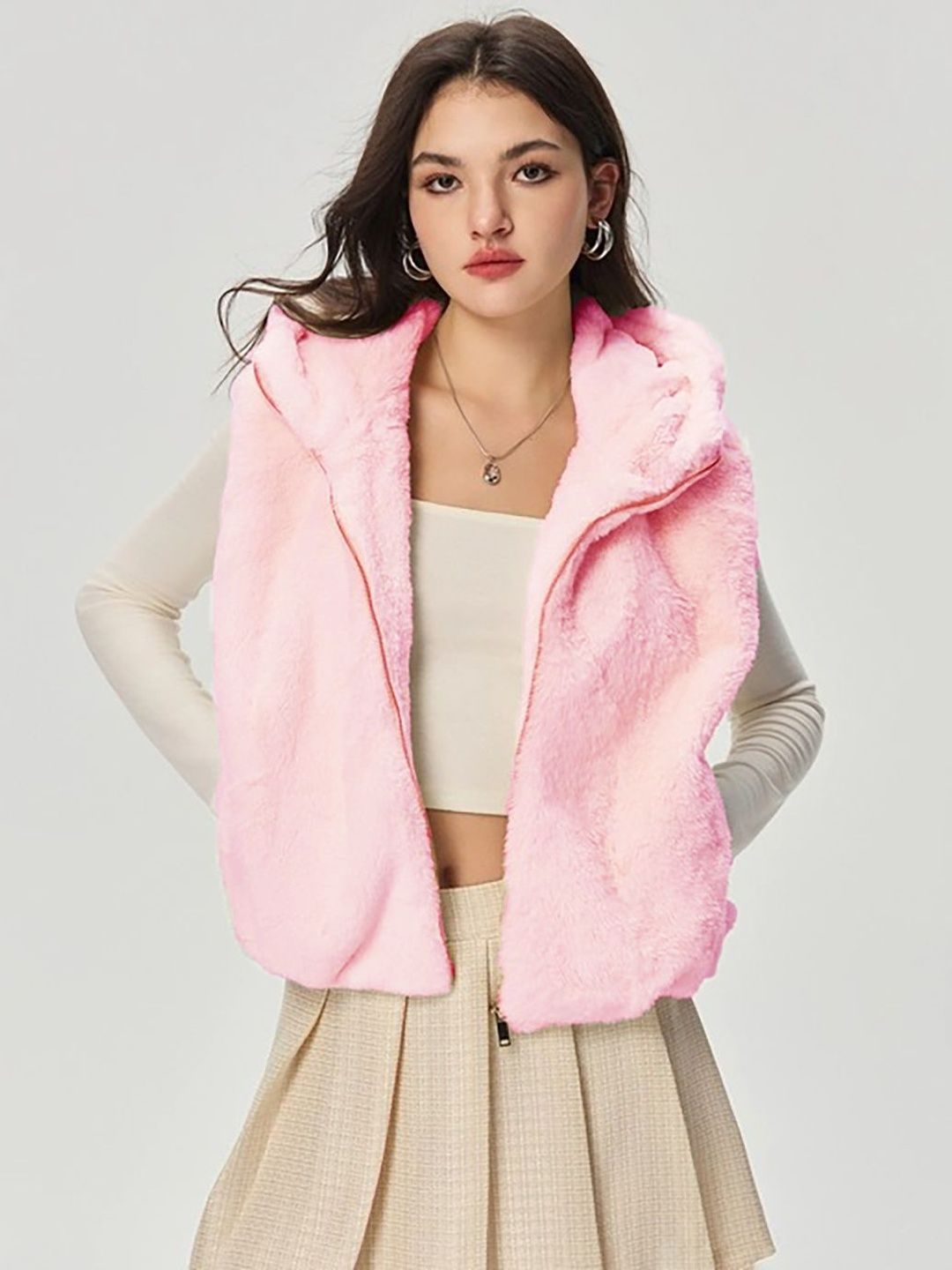 Add a touch of luxury to your winter wardrobe with the KOTTY Women's Faux Fur Sleeveless Winter Jacket. Designed with premium-quality faux fur, this hooded vest delivers a soft, plush feel while keeping you warm and stylish. The sleeveless design allows for easy layering over tops, sweaters, or dresses, making it perfect for transitional weather and light winter days. Its smooth zipper closure ensures effortless wear and a polished look. This cozy yet lightweight faux fur jacket provides the right blend of fashion and function, ideal for outings, travel, or casual get-togethers. The high-quality stitching enhances durability, while the furry texture adds an elegant charm. Pair it with jeans or skirts for a chic, modern appearance that stands out in any setting. Stay warm, comfortable, and effortlessly stylish with this must-have winter essential from KOTTY.