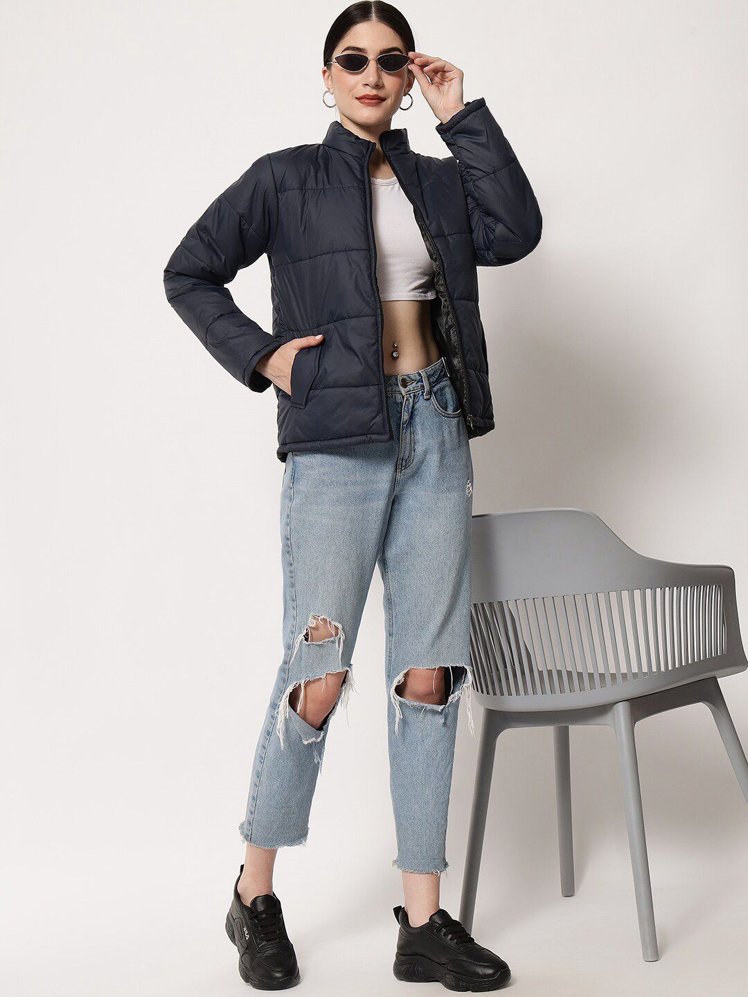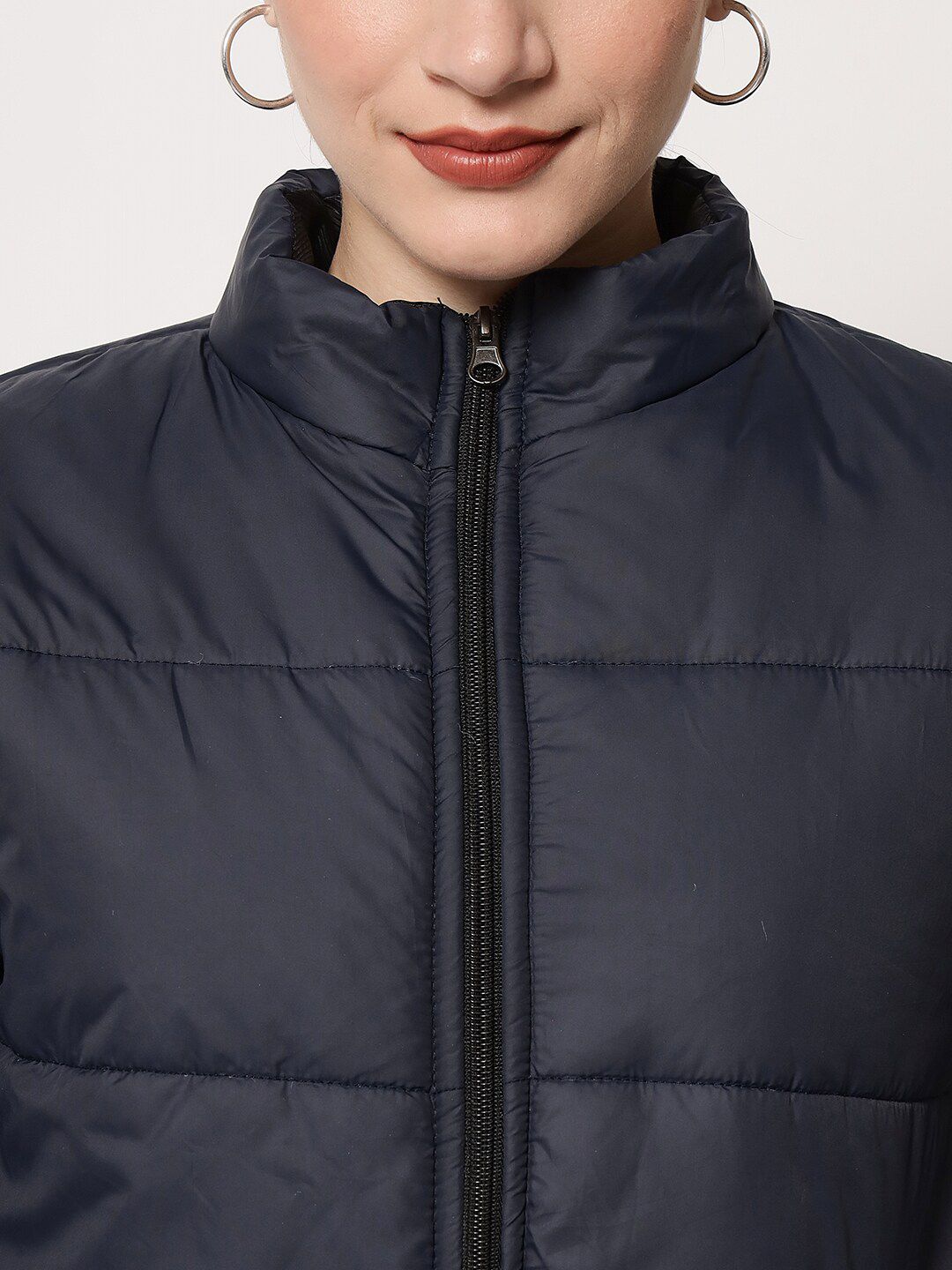 Kotty Women Navy Blue Solid Polyester Puffer Jacket