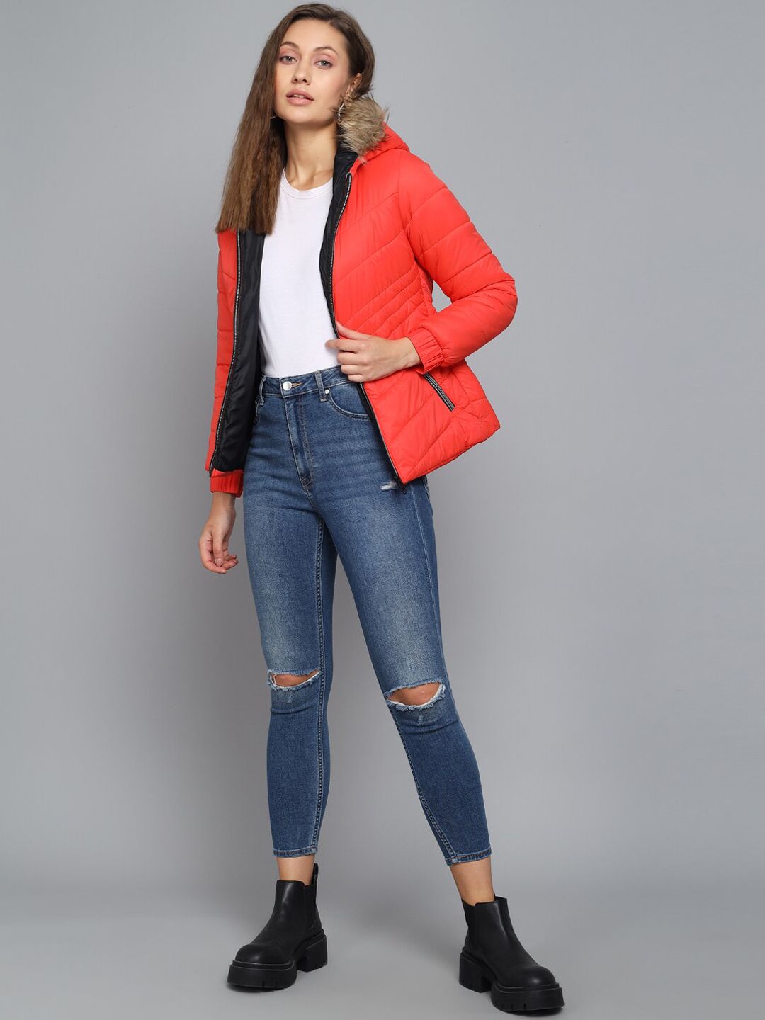 Kotty Women Orange Outdoor Puffer Jacket