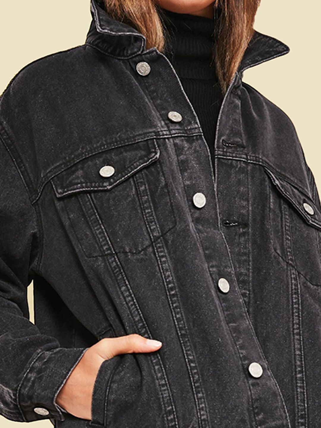 Kotty Women Spread Collar Washed Cotton Casual Denim Jacket