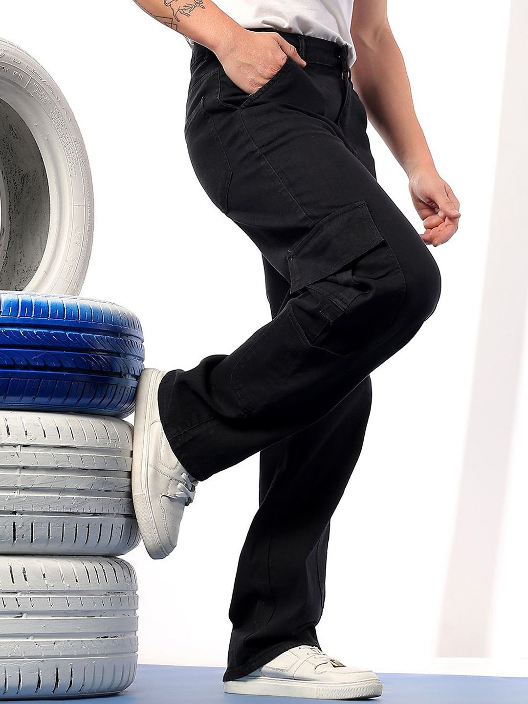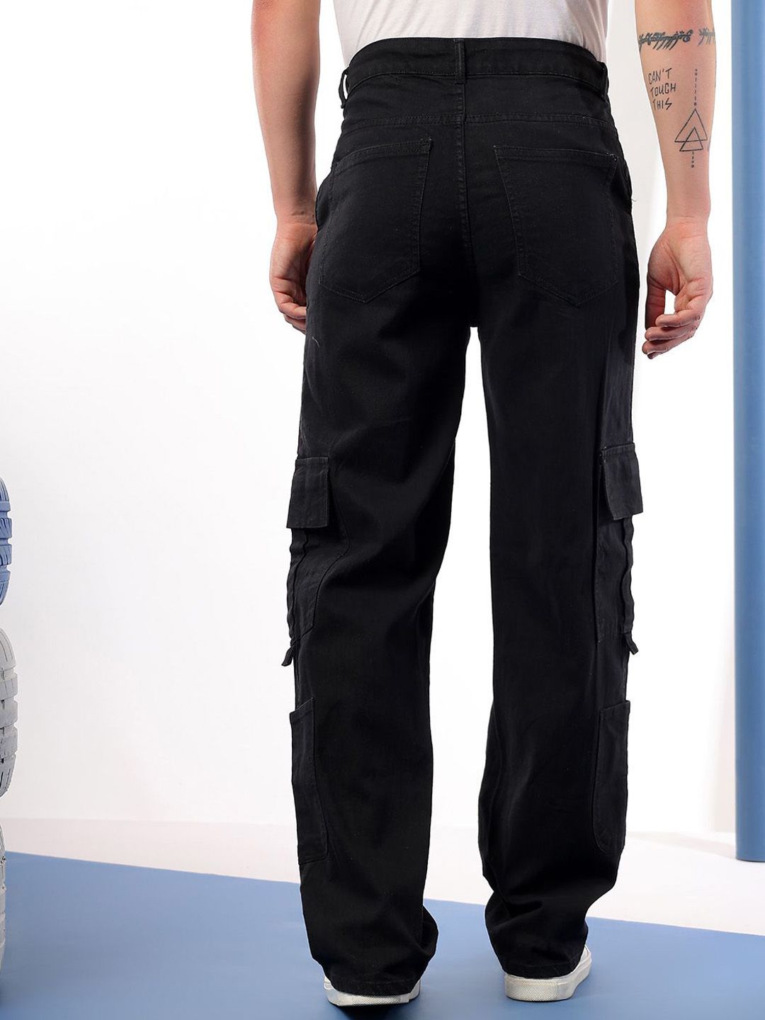 Dark shade, no fade black jeans Regular fit, mid-rise Brand Fit: comfort Clean look Stretchable 5 pocket Length: regular || SIZE & FIT: Brand Fit: Comfort Fit: Regular Fit Stretchable The model (height 5'8) is wearing a size 28 || MATERIAL & CARE: CottonMachine Wash