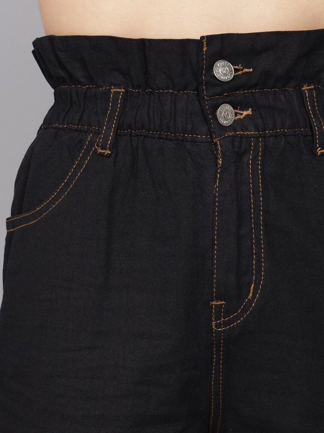 Kotty Women Black Boyfriend Fit High-Rise Pure Cotton Jeans