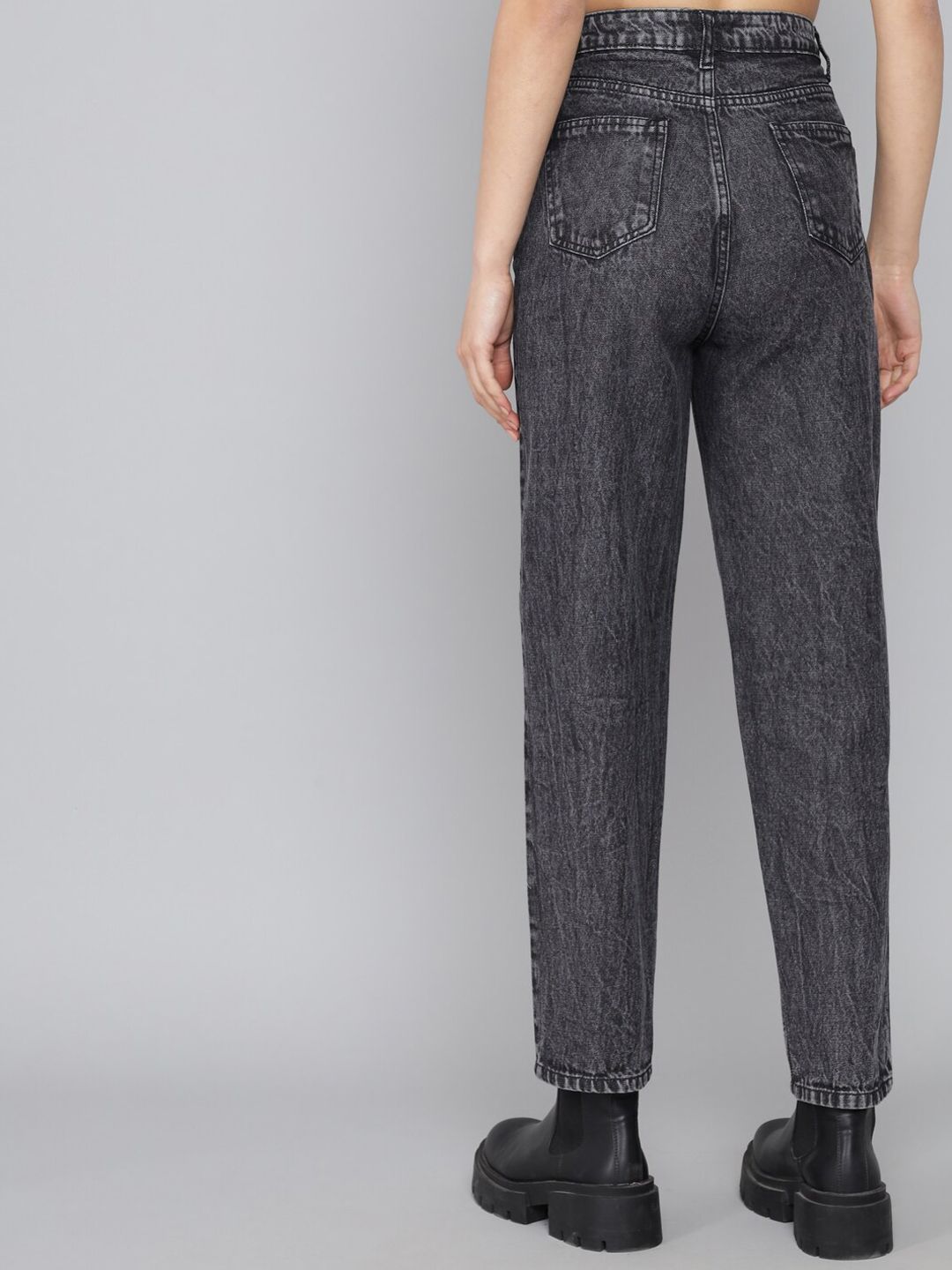 Dark shade, heavy fade black jeans Regular fit, high-rise Clean look Non stretchable Acid wash 4 pocket Length: cropped || MATERIAL & CARE: 100%cotton Gentle machine wash || SIZE & FIT: Fit: Regular Fit Non Stretchable The model (height 5'8) is wearing a size 28