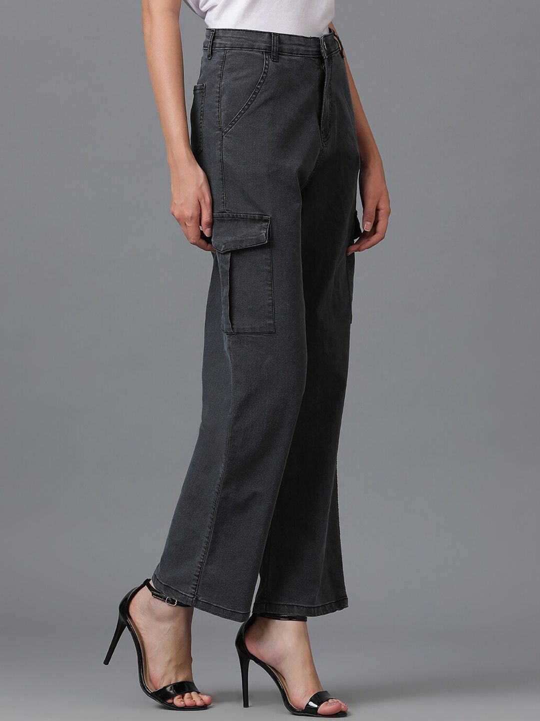 Kotty Women Black Jean Straight Fit High Rise Cargo Stretchable Jeans