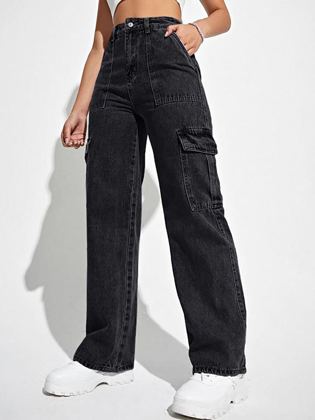 Dark shade, no fade black jeans Straight fit, high-rise Brand Fit: jean Clean look Stretchable 6 pocket Length: regular || MATERIAL & CARE: Cotton & LycraMachine Wash || SIZE & FIT: Brand Fit: Jean Fit: Straight Fit Stretchable The model (height 5'8) is wearing a size 28