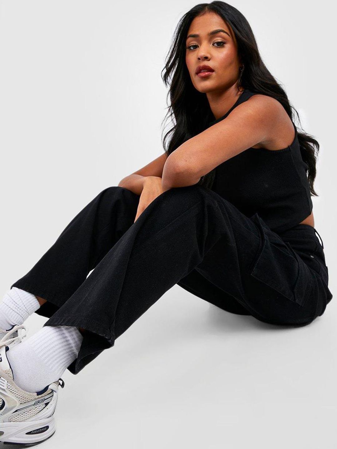 Give your casual wardrobe a stylish lift with these black cargo jeans from Kotty. These trendy high rise jeans features a charming straight fit. Made from cotton lycra fabric, they are comfortable to wear and stylish in look. Pair them high rise jeans with a round neck t-shirt for a smarty look