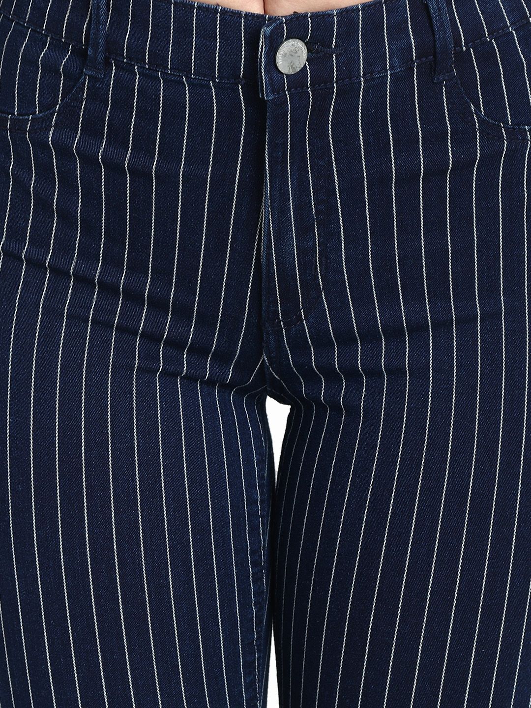 Kotty Women Blue & White Skinny Fit High-Rise Slash Knee Jeans