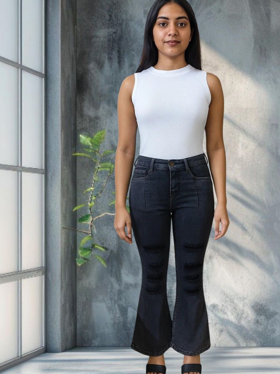 Step out in confidence with these ripped flare jeans, designed for fashion-forward women who value both comfort and modern style. Crafted from soft yet durable stretch denim, these jeans offer a flattering fit that adapts to your movements throughout the day. The mid-rise waistband provides secure comfort, while the flared leg elongates your figure for a balanced silhouette. Distressed rip details add a chic, edgy twist that makes these jeans perfect for casual brunches, coffee dates, or evening outings. Their versatile style allows pairing with tank tops, blouses, or jackets for effortless outfit transitions. Reinforced seams and premium fabric ensure these jeans remain a staple in your wardrobe season after season. Perfect for dressing up with heels or down with sneakers, these jeans are your go-to choice for creating bold, fashionable looks. Add them to your collection for a touch of contemporary flair and reliable comfort.