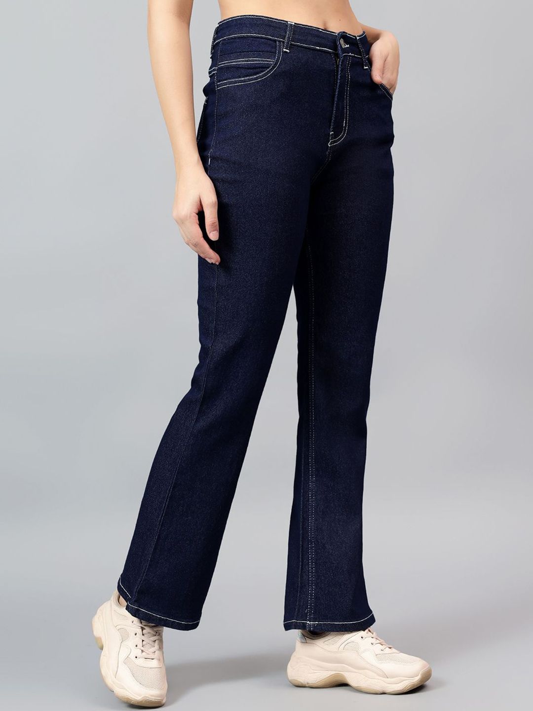 Dark shade, no fade blue jeans Bootcut, high-rise Clean look Stretchable 4 pocket Length: regular || SIZE & FIT: Fit: Bootcut Stretchable The model (height 5'8) is wearing a size 28 || MATERIAL & CARE: Cotton &ElastaneMachine Wash