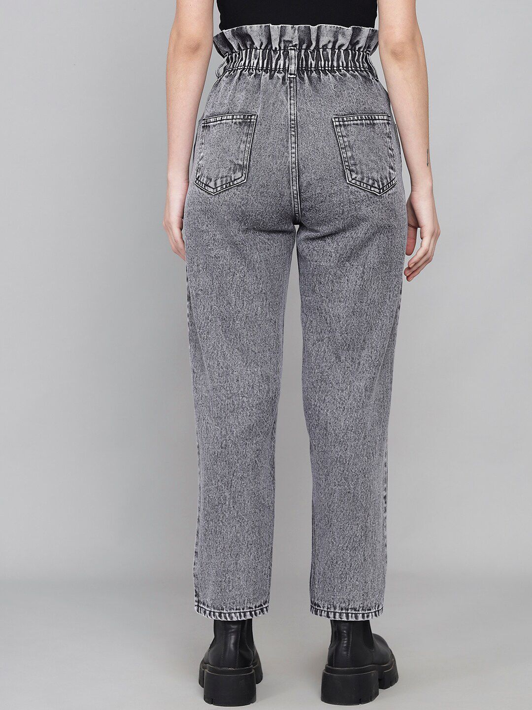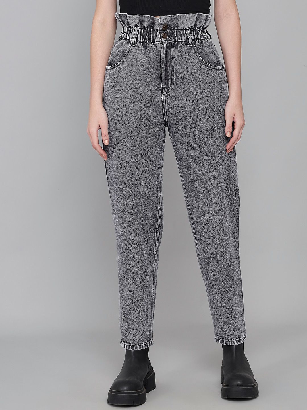 Kotty Women Charcoal Jean Boyfriend Fit High-Rise Heavy Fade Pure Cotton Jeans
