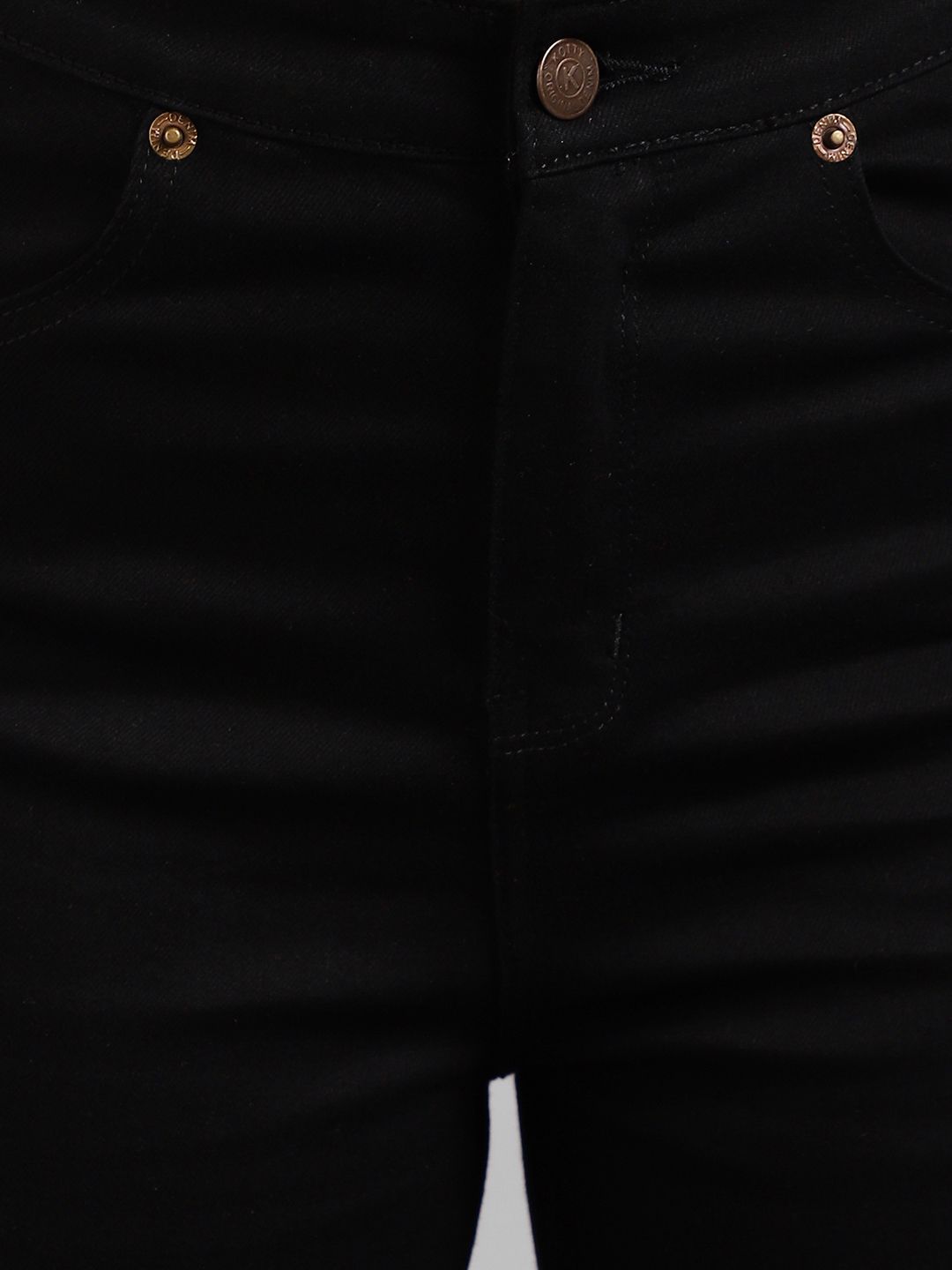Dark shade, no fade black jeans Flared, high-rise Clean look Stretchable 4 pocket Length: regular || MATERIAL & CARE: Cotton Lycra Blend Machine Wash || SIZE & FIT: Fit: Flared Stretchable The model (height 5'8) is wearing a size 28