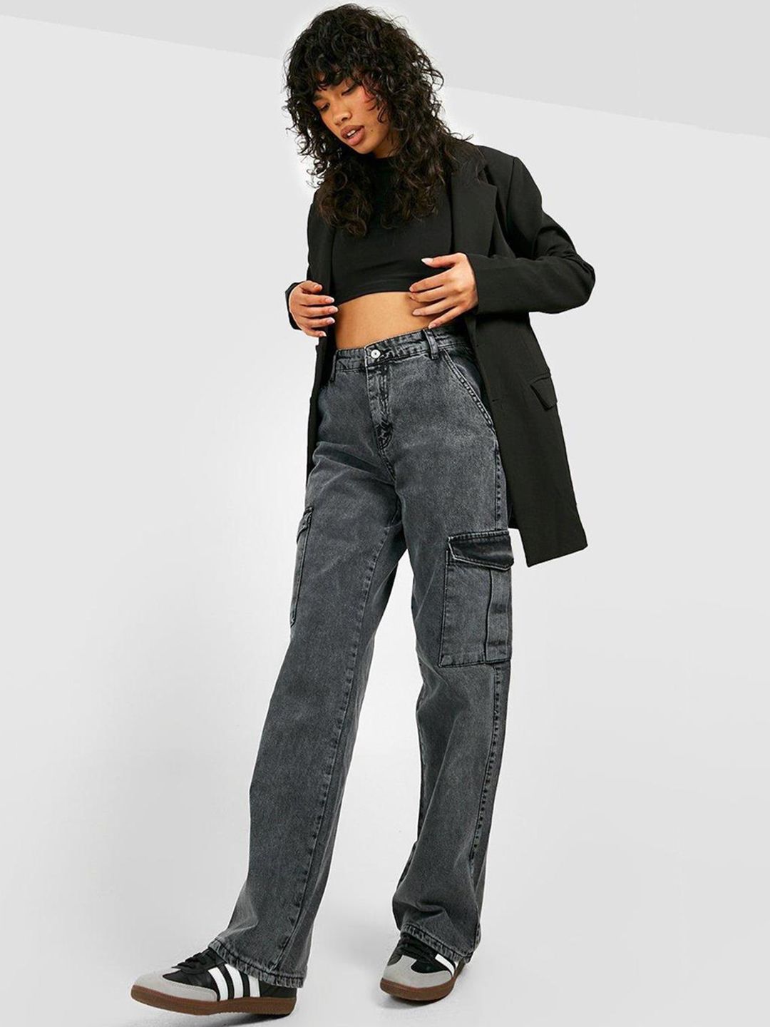 Kotty Women Grey Jean Straight Fit High Rise Light Fade Clean Look Stretchable Jeans