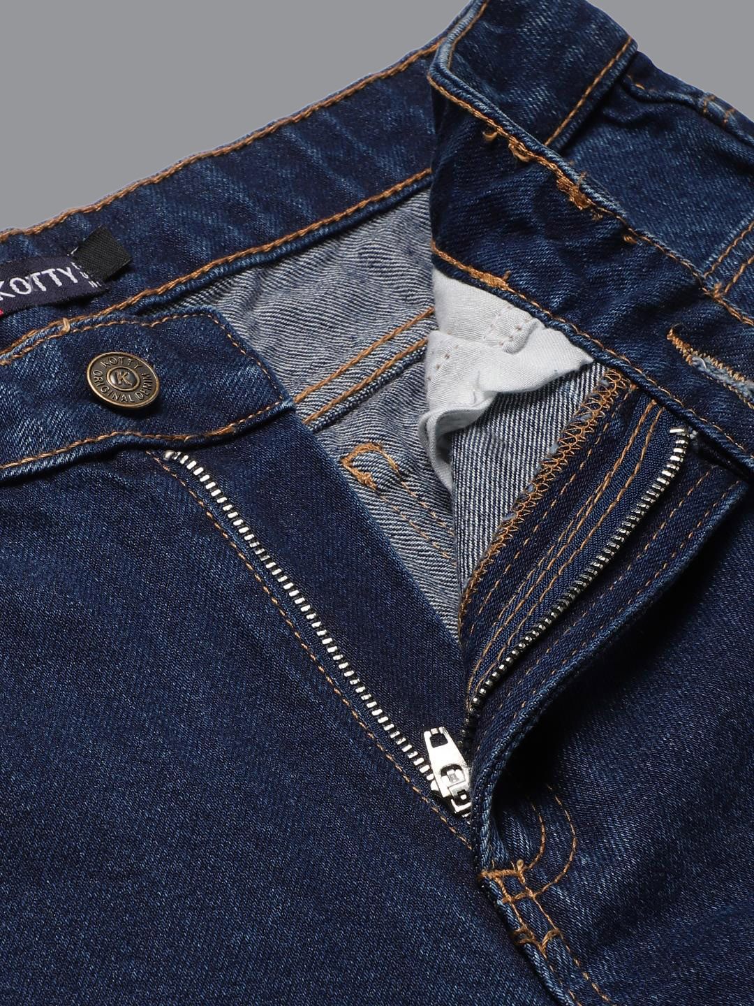 Get a young, stylish look with this soft yet clean look regular length jeans from kotty. Well tailored in fine cotton lycra blend for a smooth feel, excellent comfort and enduring strength, their straight fit silhouette ensures a delicate, relaxed charm. Pair them high rise jeans with a round neck t-shirt for a smarty look.