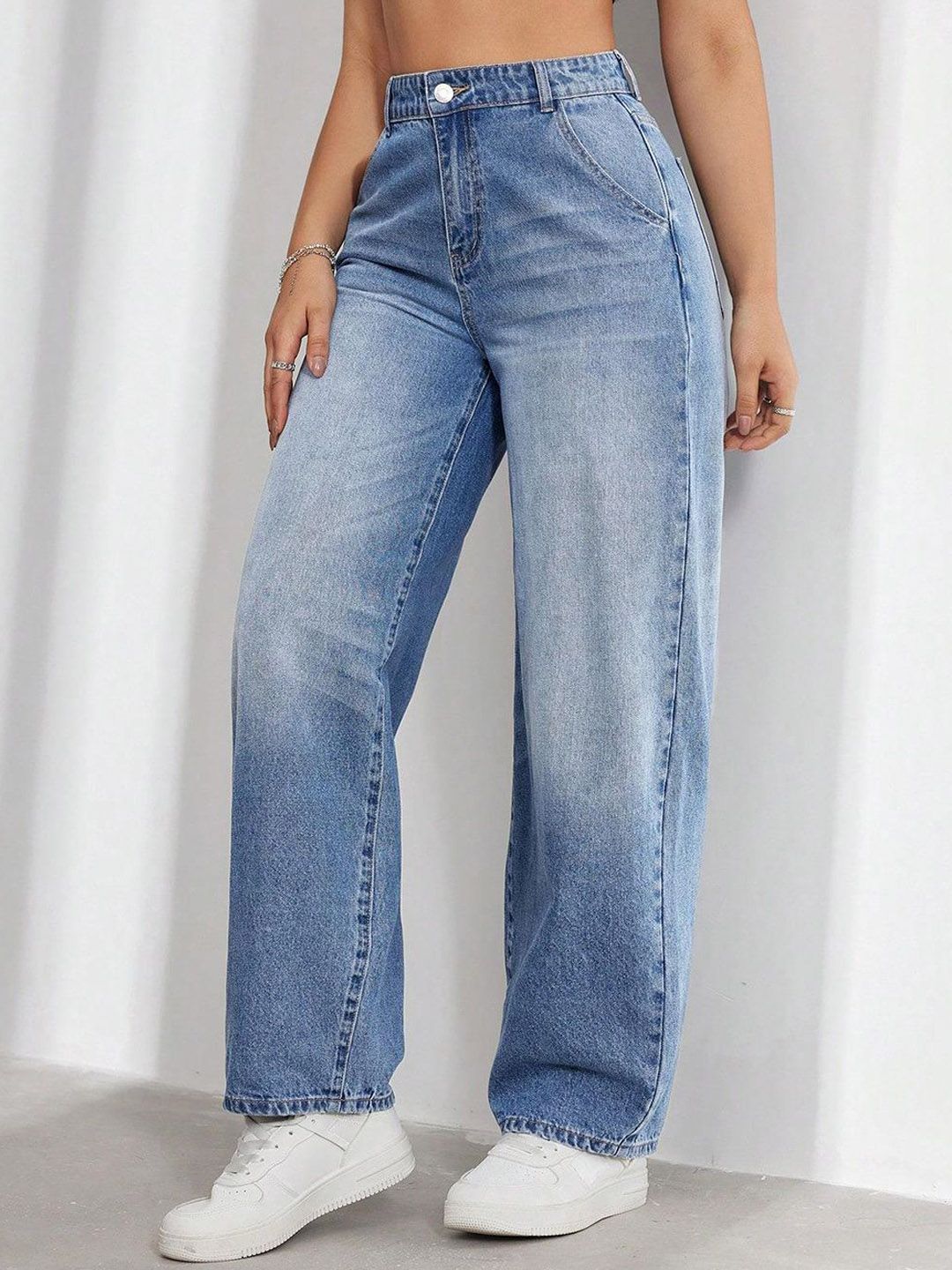 Light shade, heavy fade blue jeans Wide leg, high-rise Brand Fit: jean Clean look Stretchable 5 pocket Length: regular || SIZE & FIT: Brand Fit: Jean Fit: Wide Leg Stretchable The model (height 5'8) is wearing a size 28 || MATERIAL & CARE: Cotton Lycra Blend, Machine wash