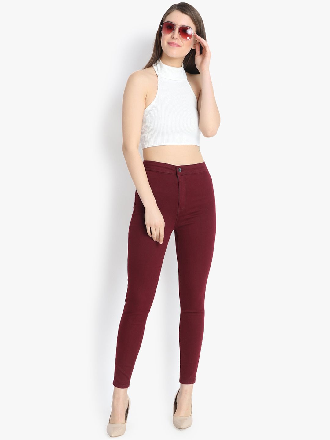 Kotty Women Maroon Skinny Fit High-Rise Clean Look Jeans