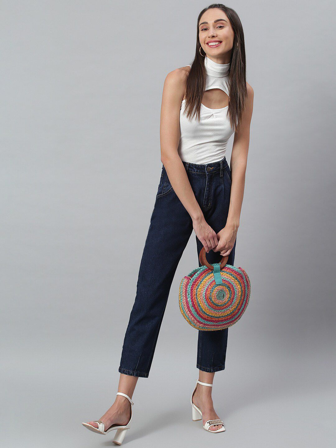 Kotty Women Navy Blue Boyfriend Fit Mid-Rise Cotton Clean Look Jeans
