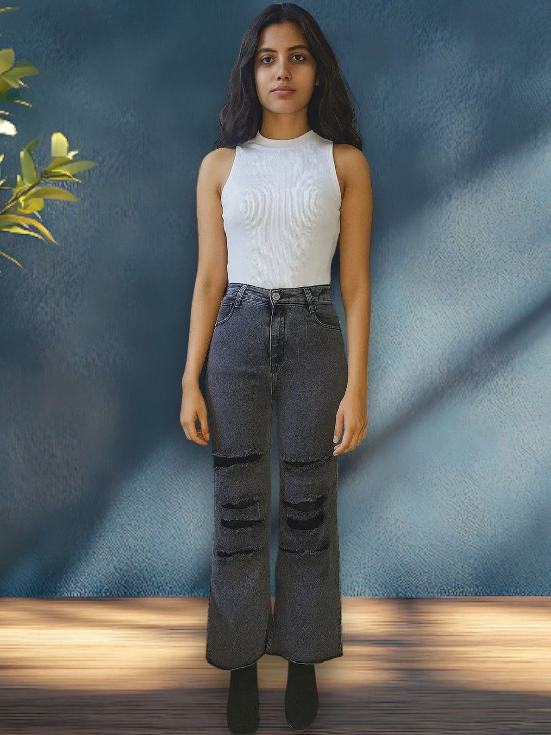 Redefine your denim style with KOTTY Women’s Wide-Leg Distressed Jeans, the perfect blend of edgy fashion and everyday comfort. Made from soft, high-quality stretch denim, these jeans offer flexibility and breathability for all-day wear. The high-rise waist provides a flattering fit that enhances your natural shape, while the wide-leg silhouette creates a relaxed yet trendy look. Featuring distressed detailing on the front, these jeans bring a bold, contemporary edge to your outfit. Pair them effortlessly with crop tops, casual tees, or tucked-in shirts for an elevated streetwear vibe. Designed to suit both casual outings and weekend adventures, these jeans deliver versatile style with superior comfort. Durable stitching and smooth texture ensure long-lasting wear, making them a timeless addition to your wardrobe. Stay stylish, confident, and comfortable with jeans that blend modern appeal and effortless sophistication.