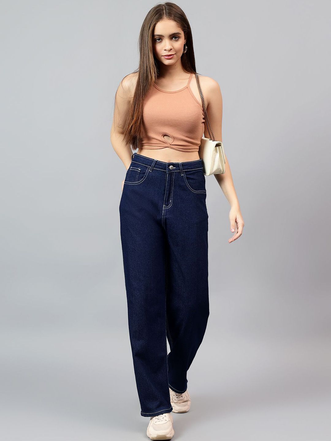 Dark shade, no fade blue jeans Regular fit, high-rise Clean look Stretchable 4 pocket Length: regular || SIZE & FIT: Fit: Regular Fit Stretchable The model (height 5'8) is wearing a size 28 || MATERIAL & CARE: Cotton Machine Wash