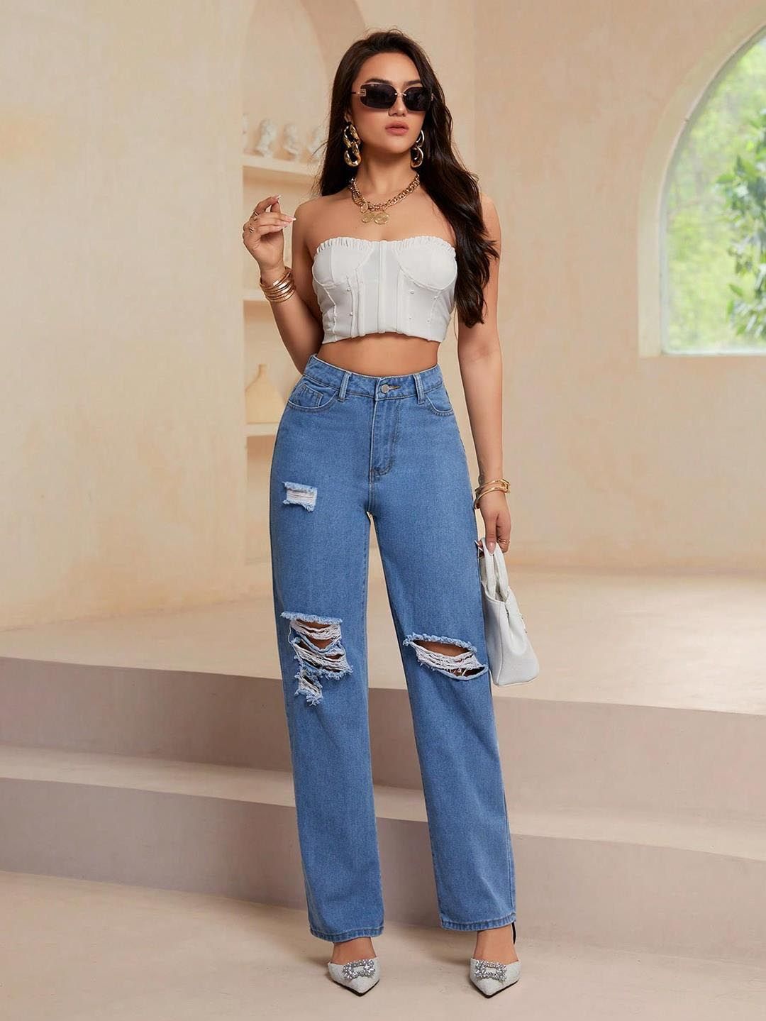 Upgrade your denim collection with KOTTY Women's Distressed Straight Fit Jeans—the perfect blend of comfort, style, and durability. Made from a premium cotton blend, these jeans provide breathability, softness, and all-day comfort.Designed with a trendy distressed look and a flattering straight-leg fit, these jeans are perfect for casual outings, college wear, and street-style fashion. The high-rise waist enhances your shape, while the rugged, ripped detailing adds a bold edge to your look.