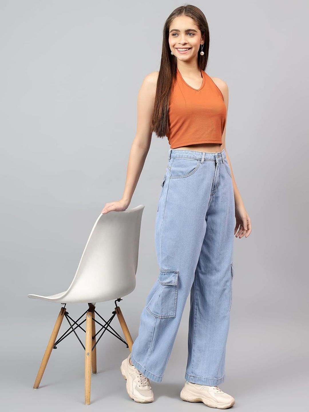 Kotty Women Wide Leg High-Rise Stretchable Cargos Style Jeans
