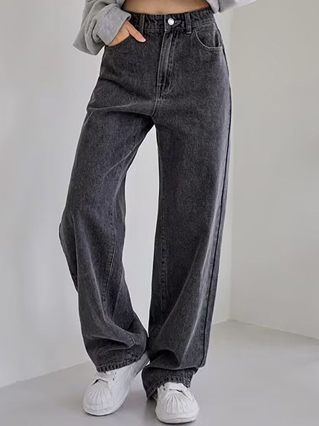 No fade grey jeans Wide leg, high-rise Brand Fit: jean Clean look Stretchable 5 pocket Length: regular || SIZE & FIT: Brand Fit: Jean Fit: Wide Leg Stretchable The model (height 5'8) is wearing a size 28 || MATERIAL & CARE: cottonMachine wash