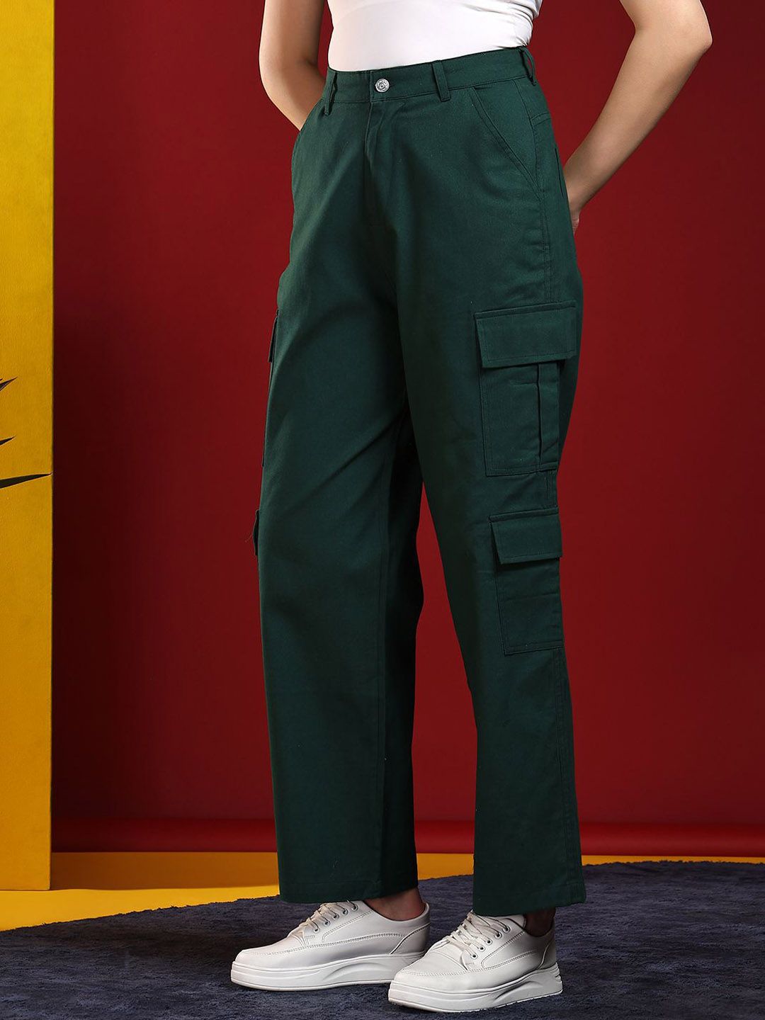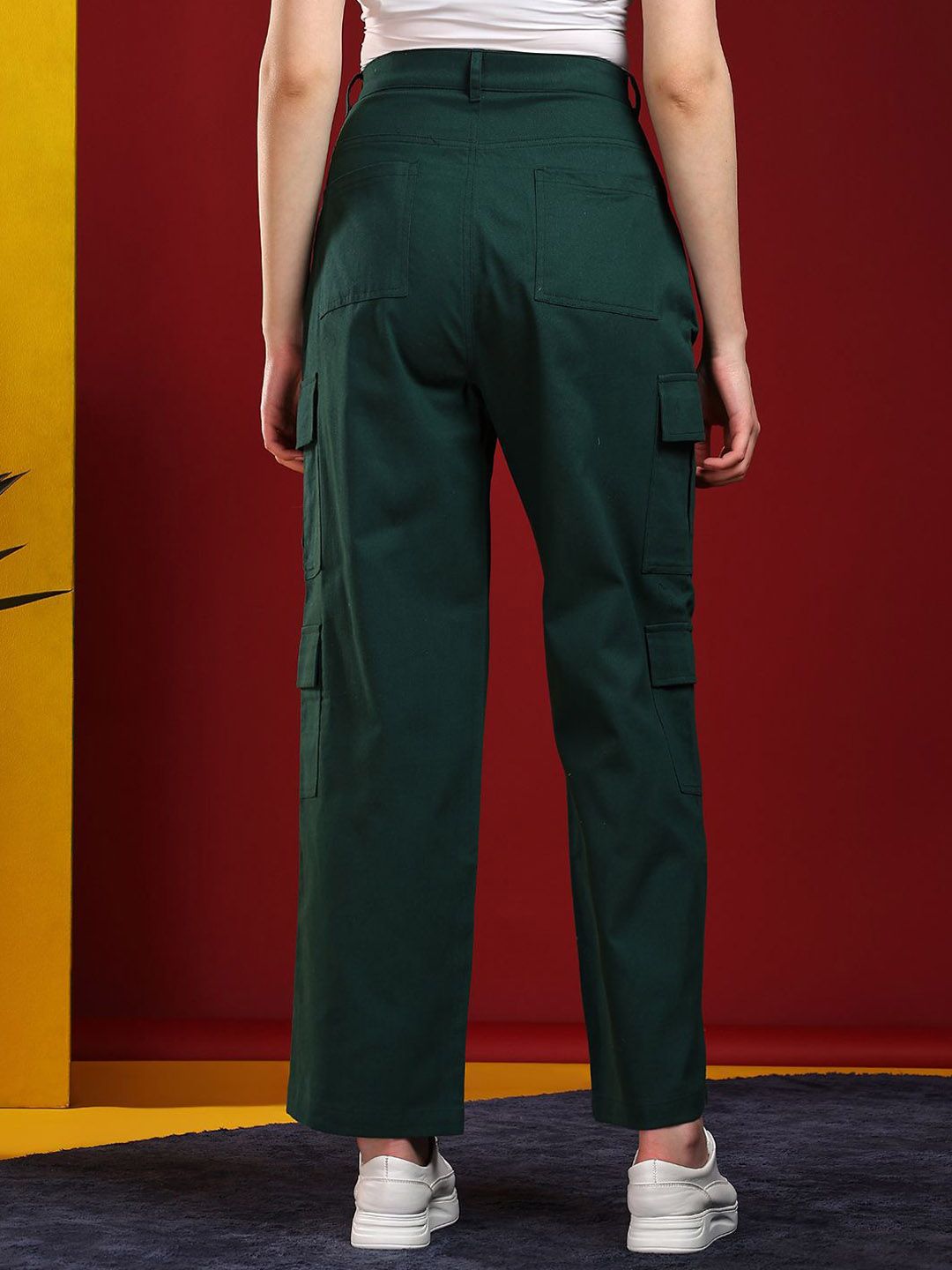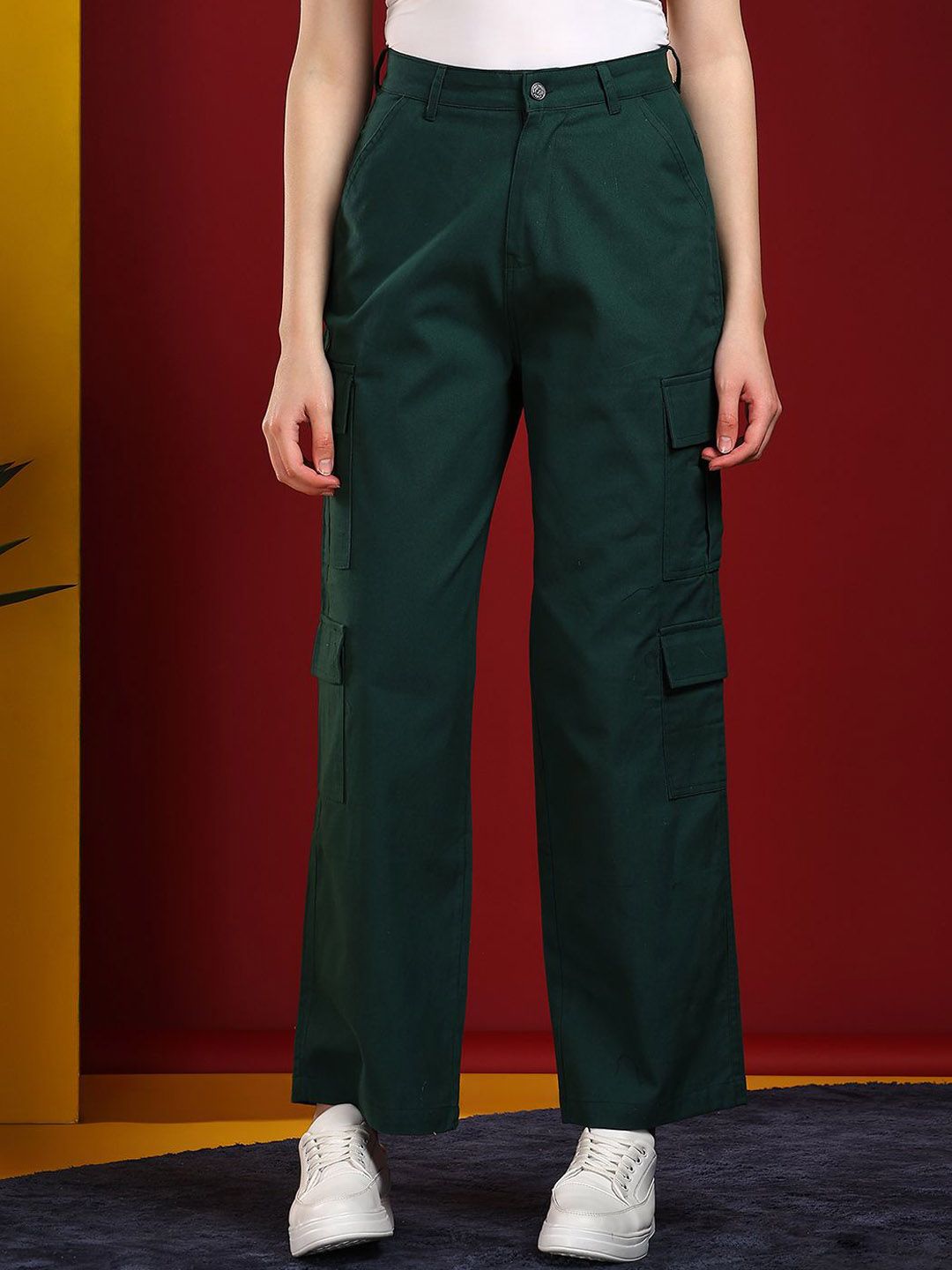 Kotty Womens Straight Fit High-Rise Stretchable Cargo Jeans