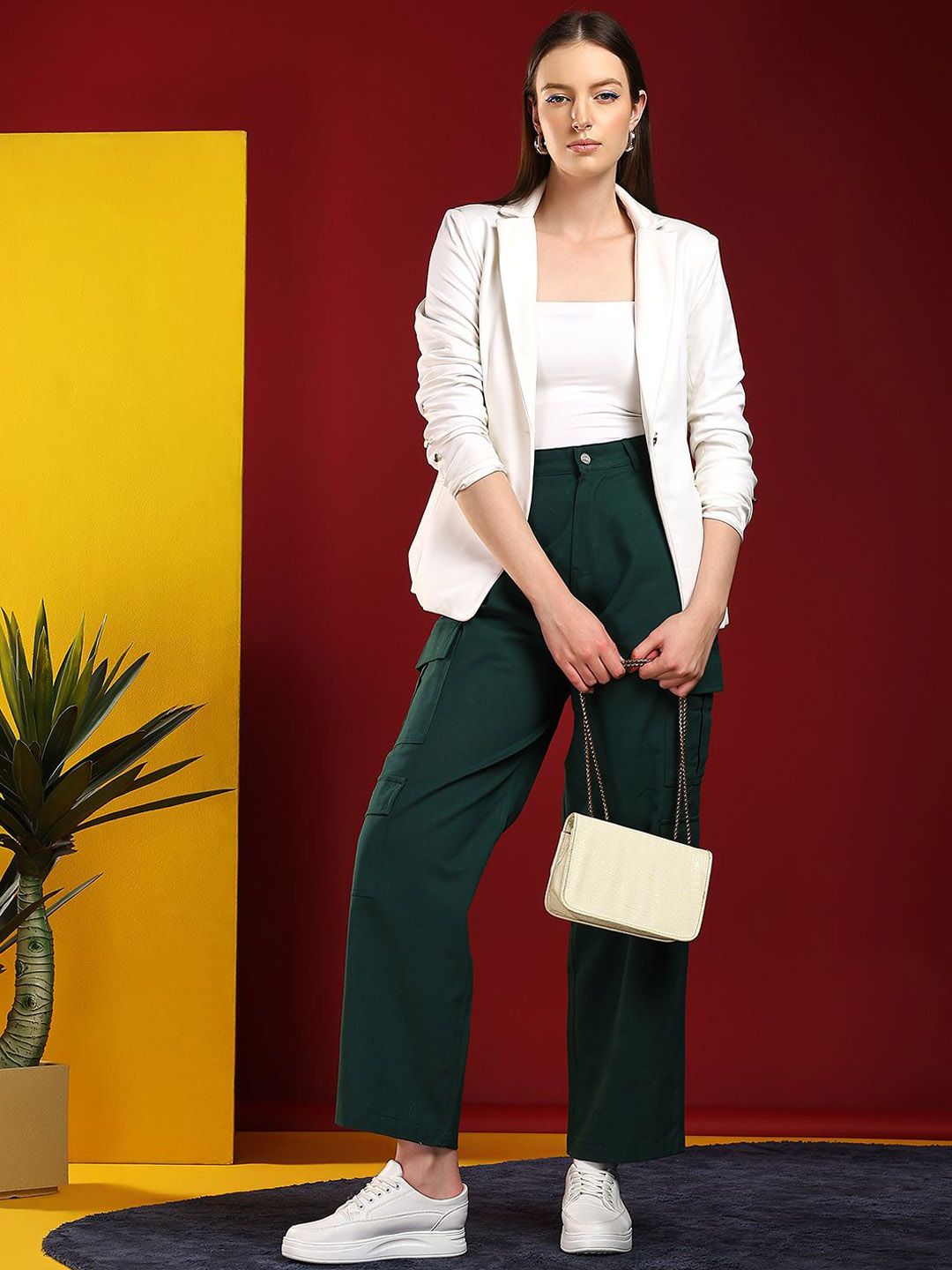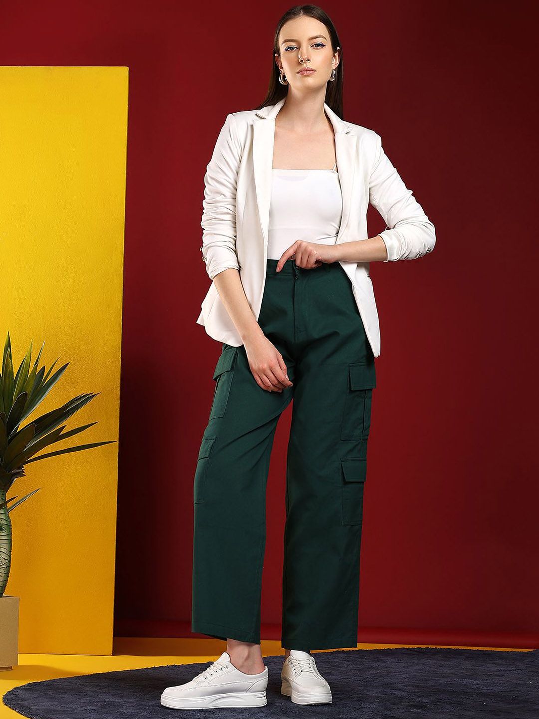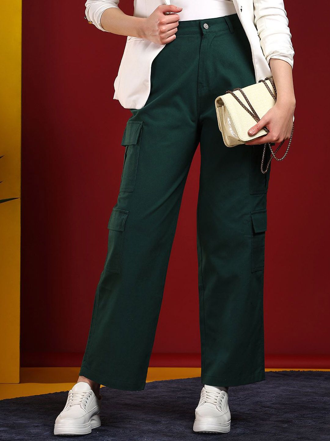 Kotty Womens Straight Fit High-Rise Stretchable Cargo Jeans