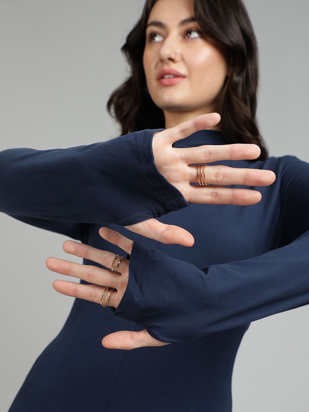 Product Details: Blue solid basic jumpsuit ,has a round neck, long sleeves, na pockets || MATERIAL & CARE: Polyester Machine Wash || SIZE & FIT: The model (height 5'8) is wearing a size S