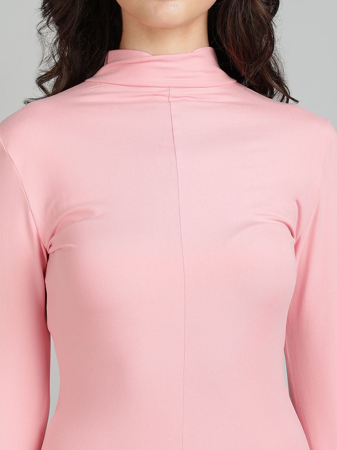 Product Details: Pink solid basic jumpsuit ,has a round neck, long sleeves, na pockets || MATERIAL & CARE: CottonMachine Wash || SIZE & FIT: The model (height 5'8) is wearing a size S