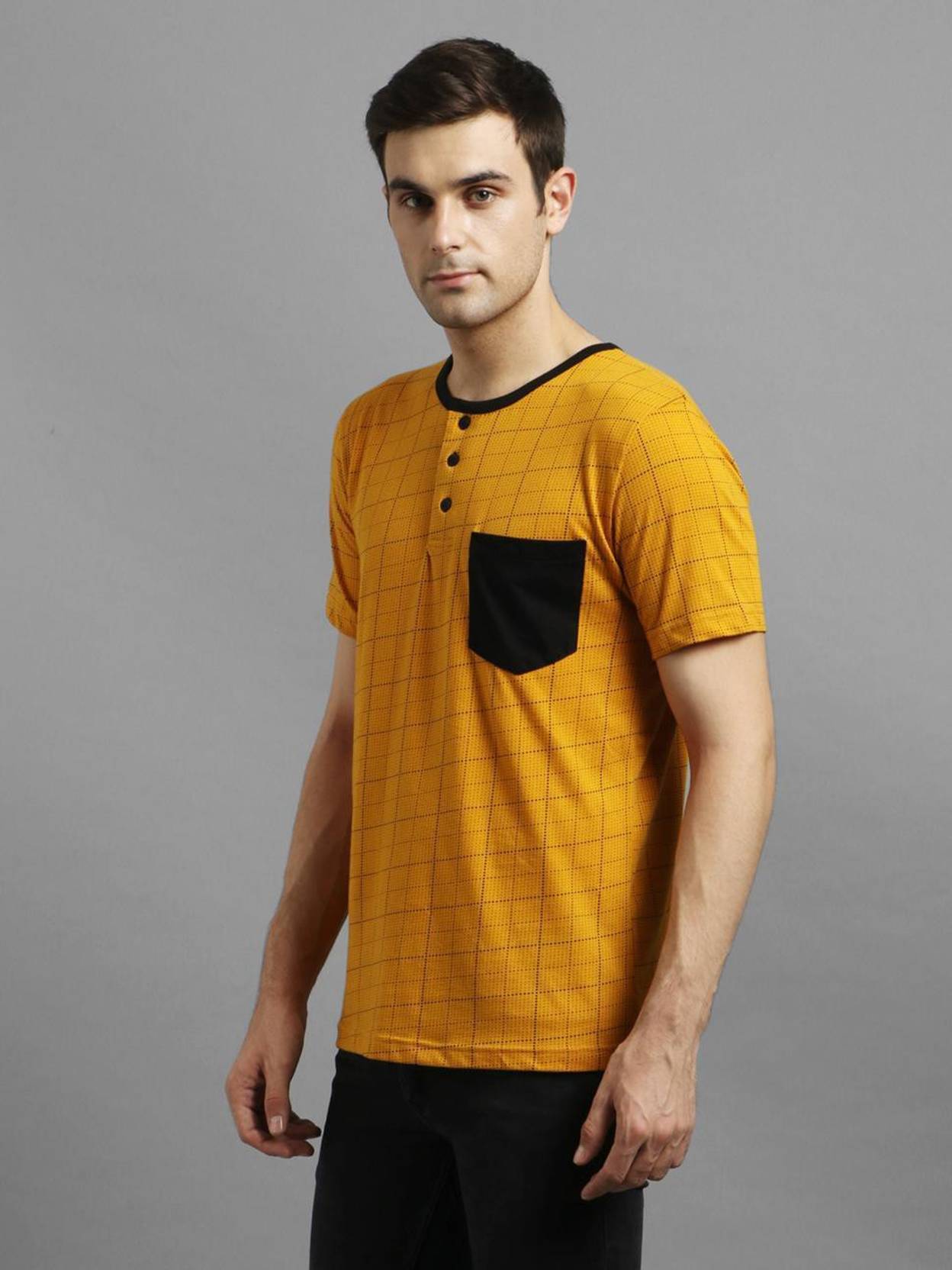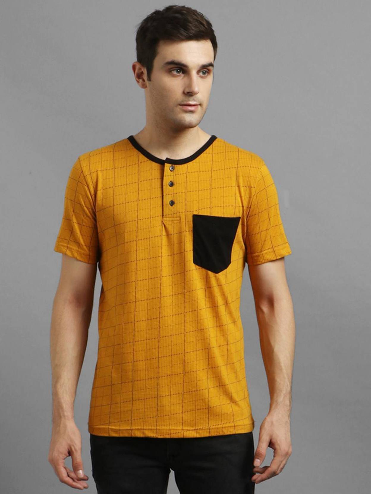 This KOTTY men's yellow T-shirt features a comfortable round neck design and a stylish printed pattern. Made from a cotton blend, it balances softness and durability, making it ideal for everyday wear. Its breathable fabric keeps you cool and comfortable, while the vibrant yellow color adds a fresh, energetic touch to your casual wardrobe.