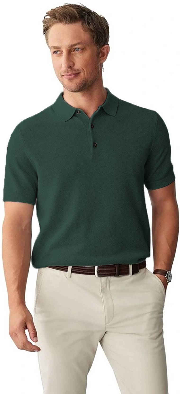 KOTTY Men Solid Polo Neck Cotton Blend Green T-Shirt