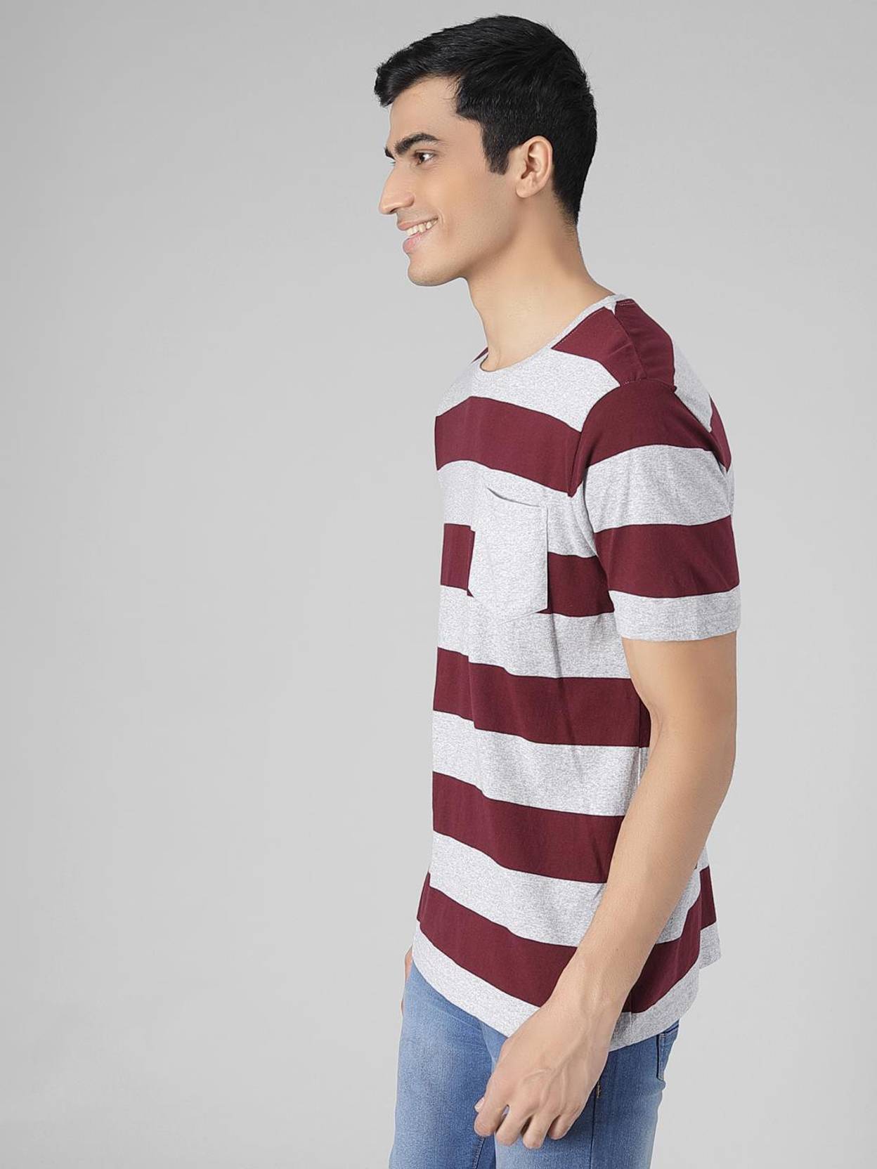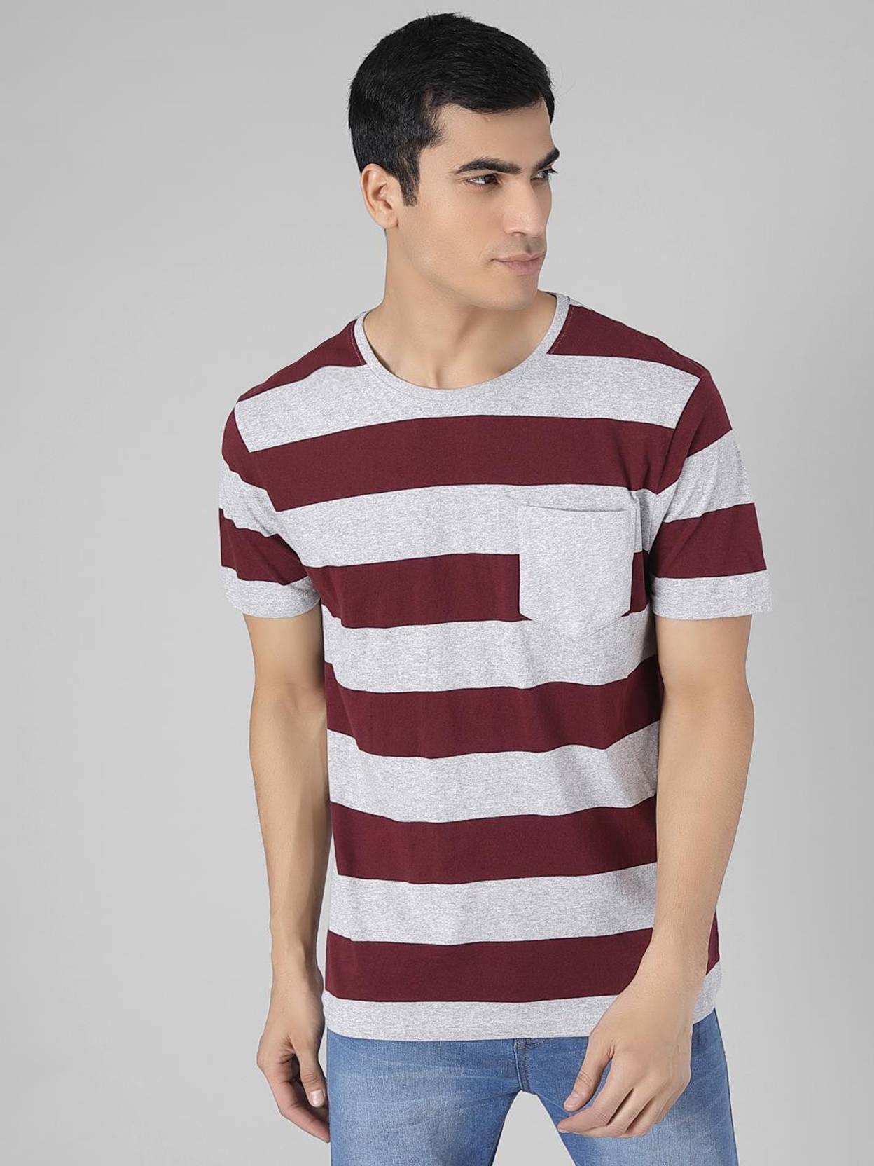KOTTY Men Striped Round Neck Pure Cotton Multicolor T-Shirt