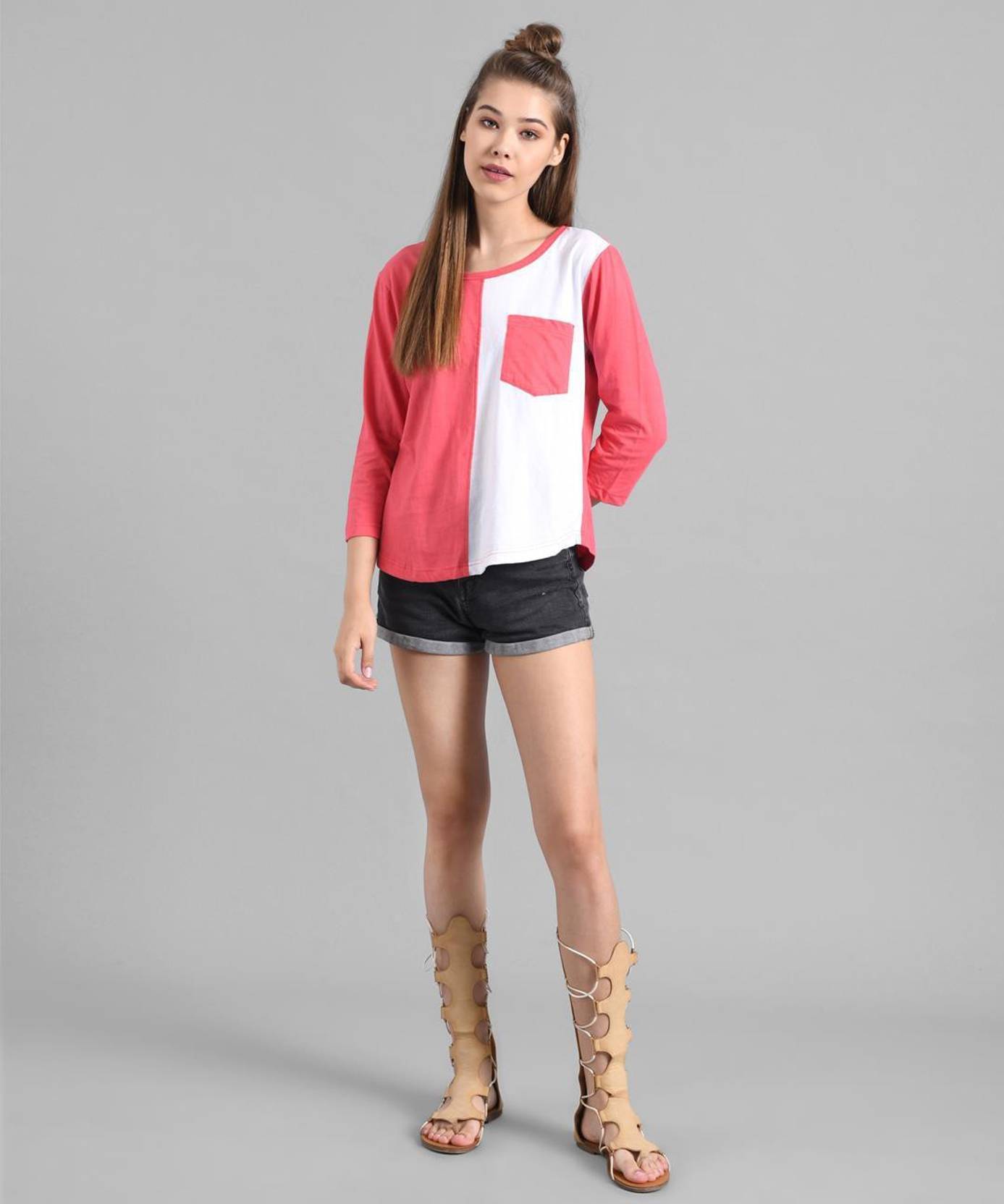 KOTTY Pack of 3 Women Colorblock Round Neck Cotton Blend Multicolor T-Shirt