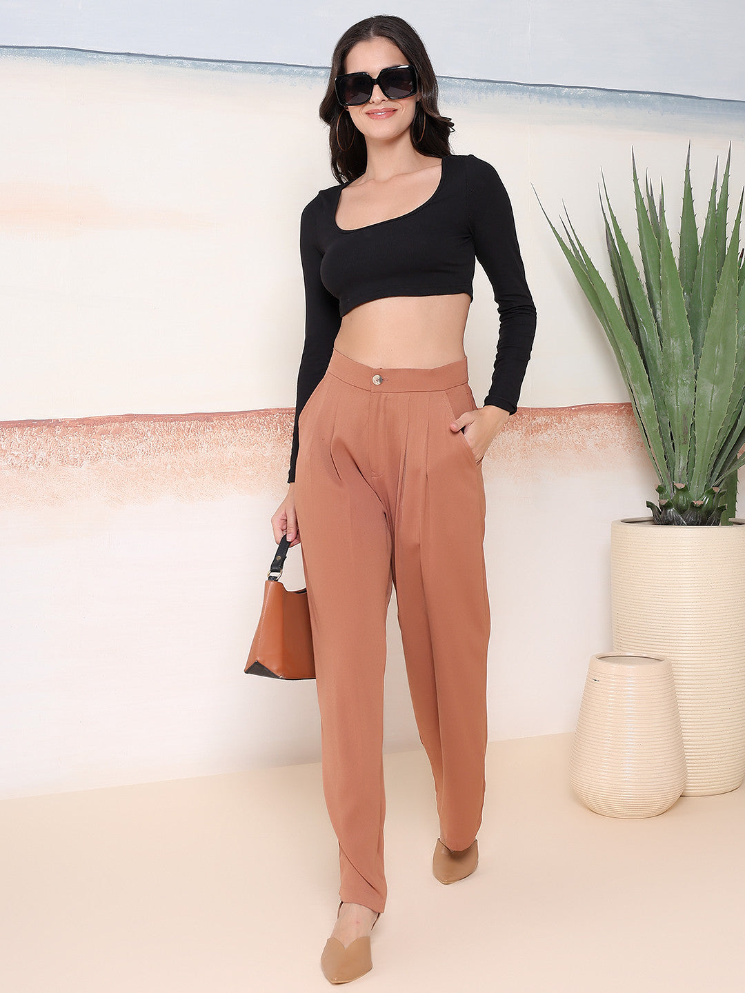 KOTTY Regular Fit Women Brown Trousers