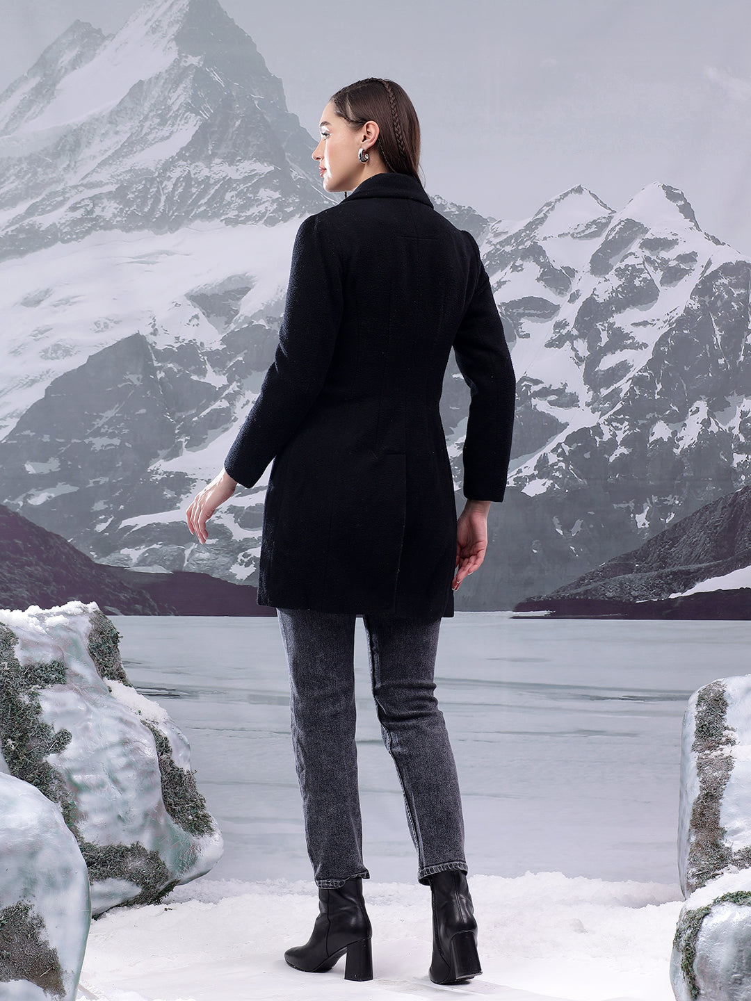 KOTTY Solid Double Breasted Casual Women Blazer (Black)