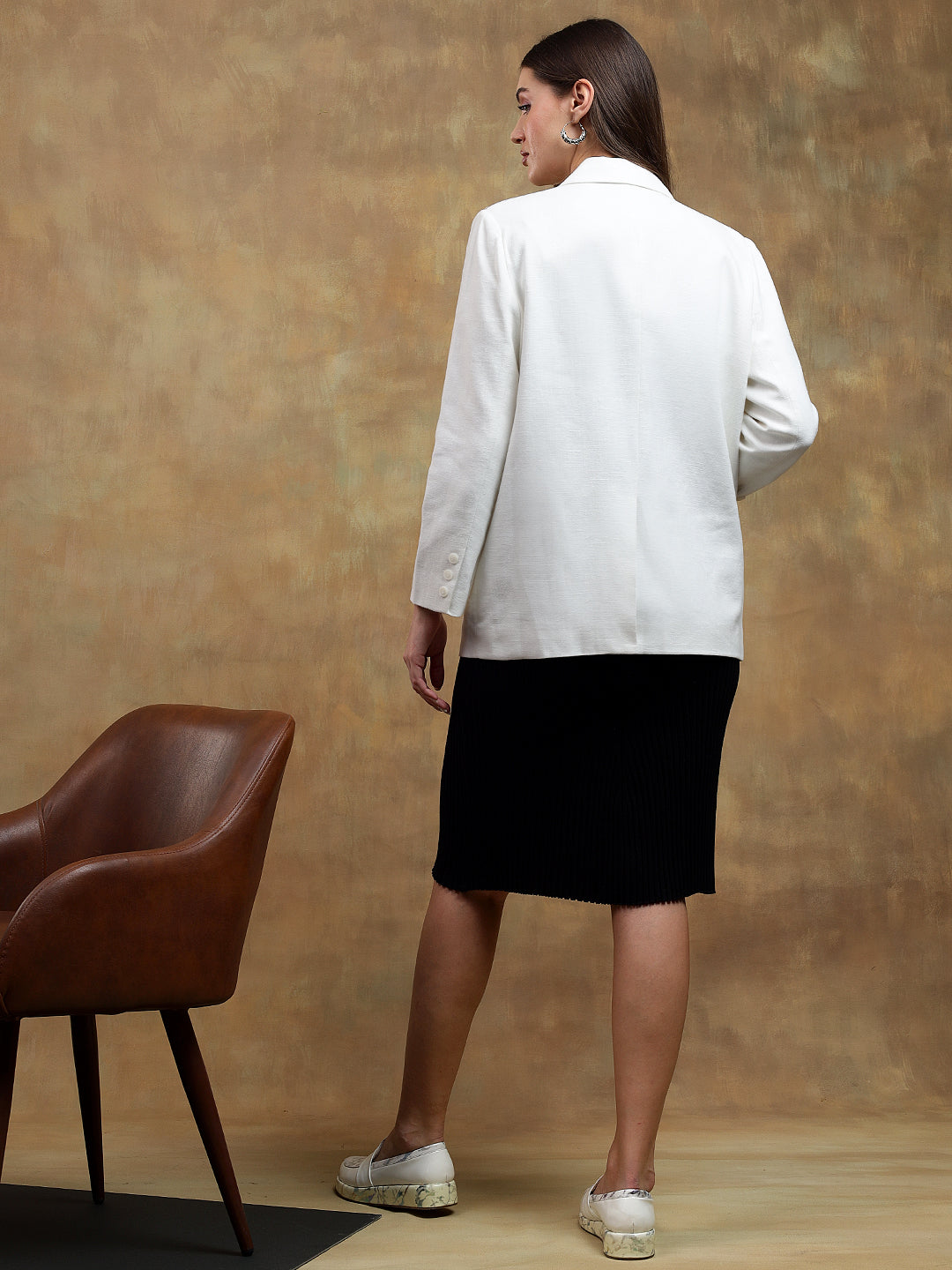 KOTTY Solid Double Breasted Casual Women Blazer (White)