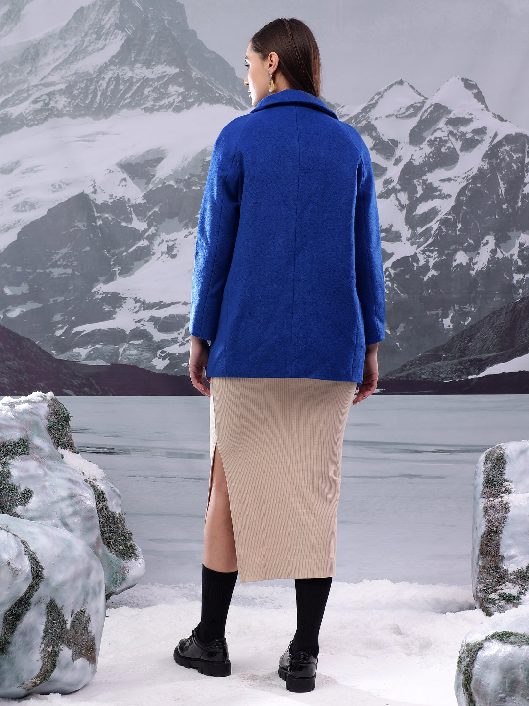 KOTTY Solid Single Breasted Casual Women Blazer (Blue)