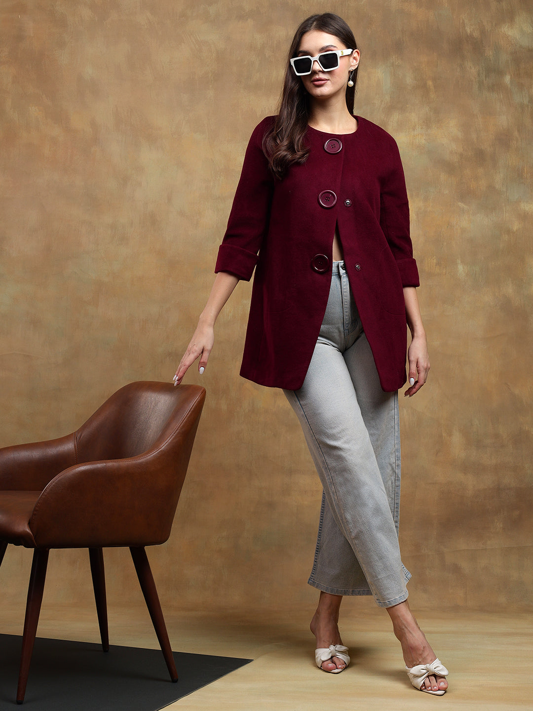 KOTTY Solid Single Breasted Casual Women Blazer (Maroon)