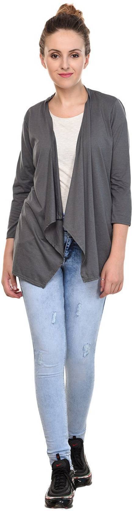 KOTTY Women Asymmetric 3/4 Sleeve Grey Shrug