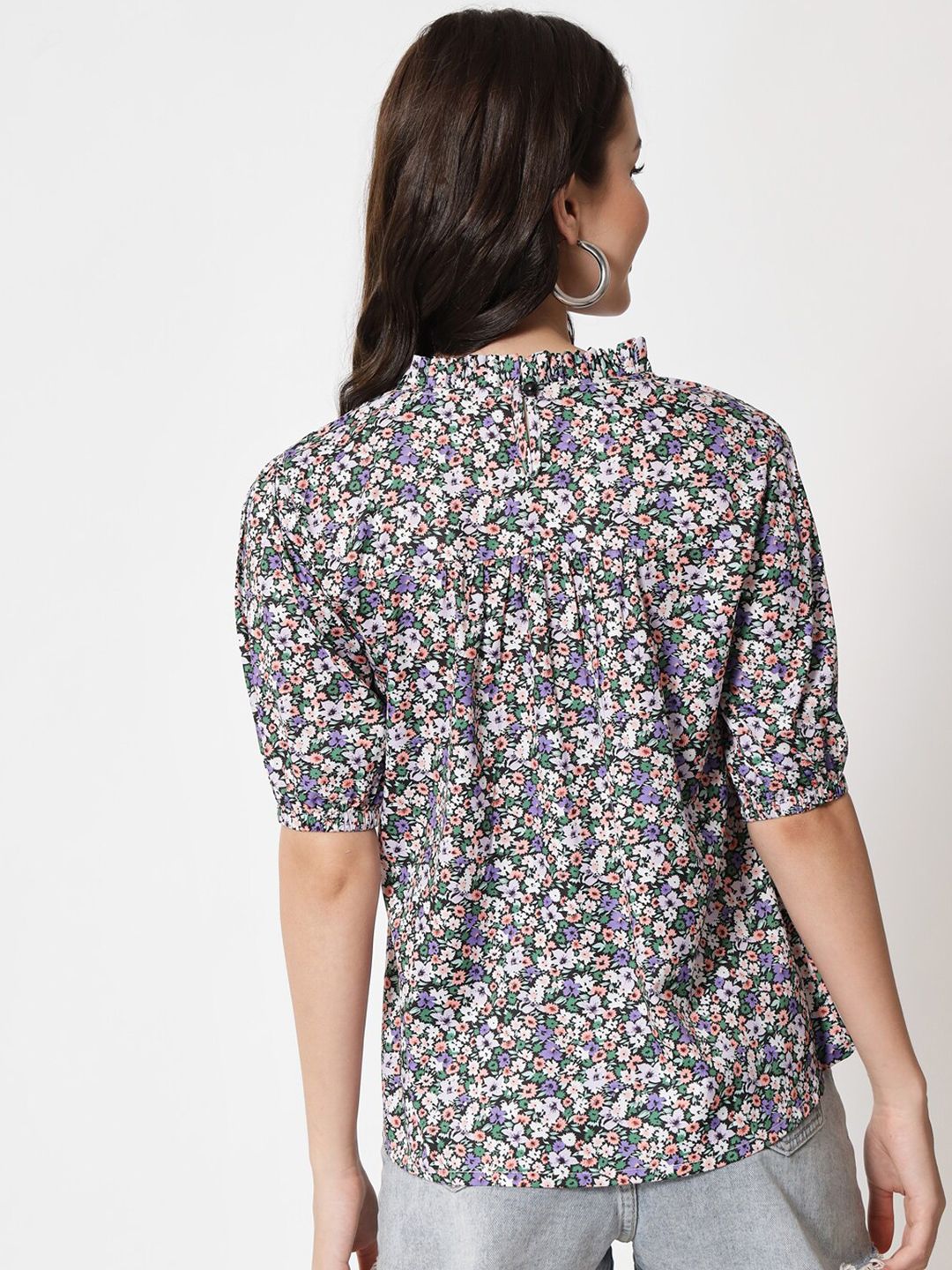 Kotty Women Grey Floral Print Crepe Top