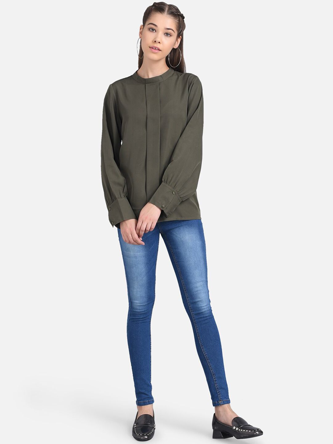 Kotty Women Olive Green Solid Shirt Style Pure Cotton Top