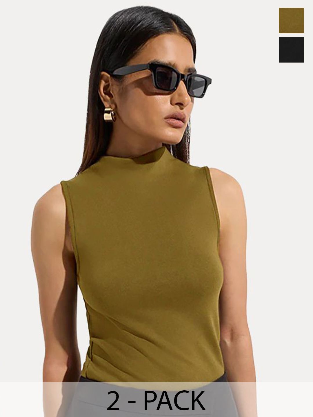 Refresh your closet with the stylish KOTTY Women’s Sleeveless High Neck Combo Pack of 2, crafted for women who love fashion and function. Featuring a minimal yet elegant design, these tops offer a flattering silhouette that complements any outfit. The high neck style adds sophistication, while the soft, stretchable fabric ensures a comfortable fit. Easy to pair with formal trousers for work or jeans for a casual look, this combo delivers unmatched versatility. Perfect for every season, these tops can be layered under jackets or worn solo for a chic vibe. Designed for effortless dressing, the pack of 2 ensures maximum value without compromising quality. Whether heading to work, a weekend outing, or a special event, these tops give you endless styling options. Make KOTTY your go-to brand for wardrobe essentials that combine elegance, durability, and comfort.