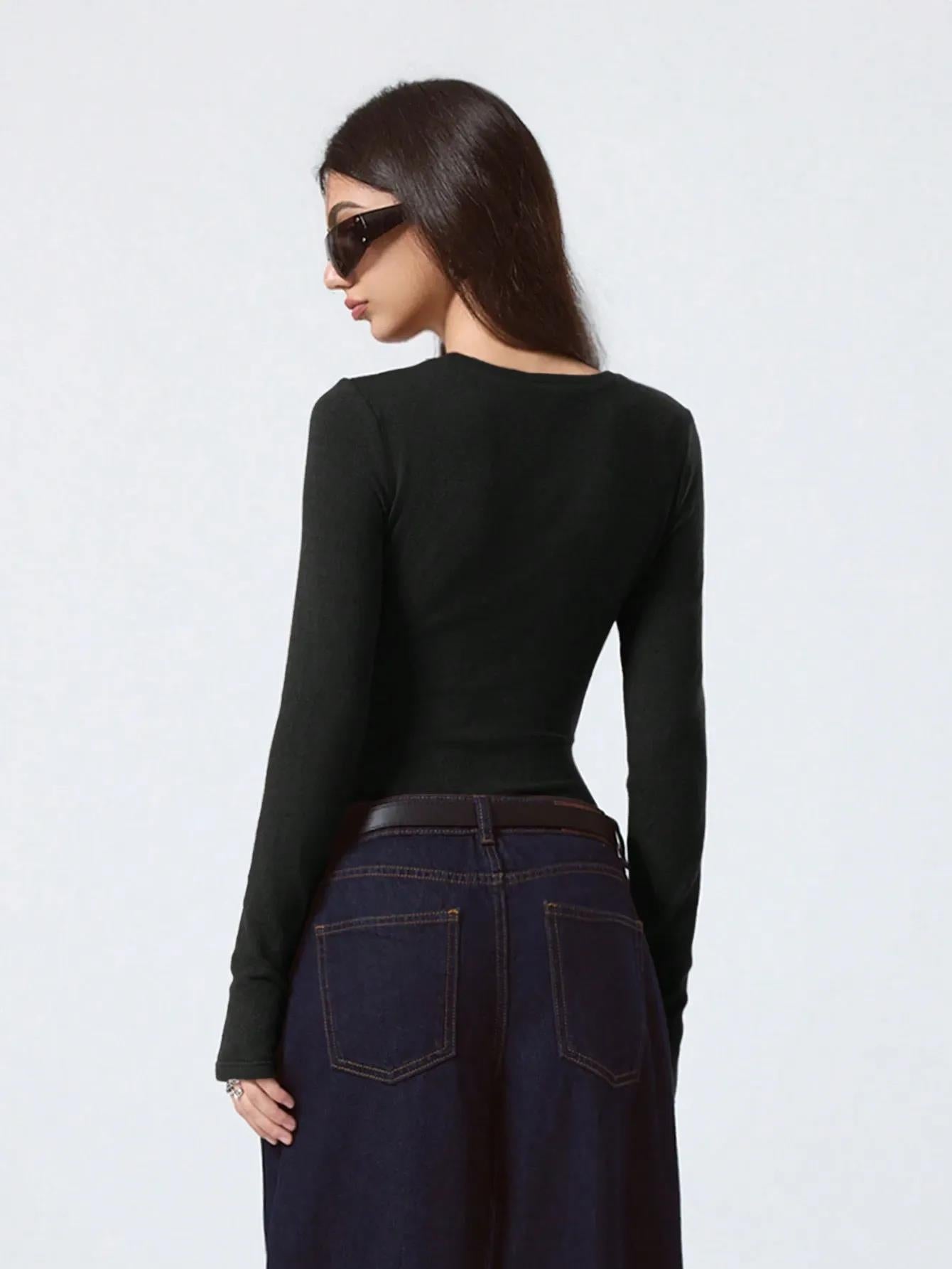 KOTTY Women’s Black Full Sleeve Slim Fit T-Shirt