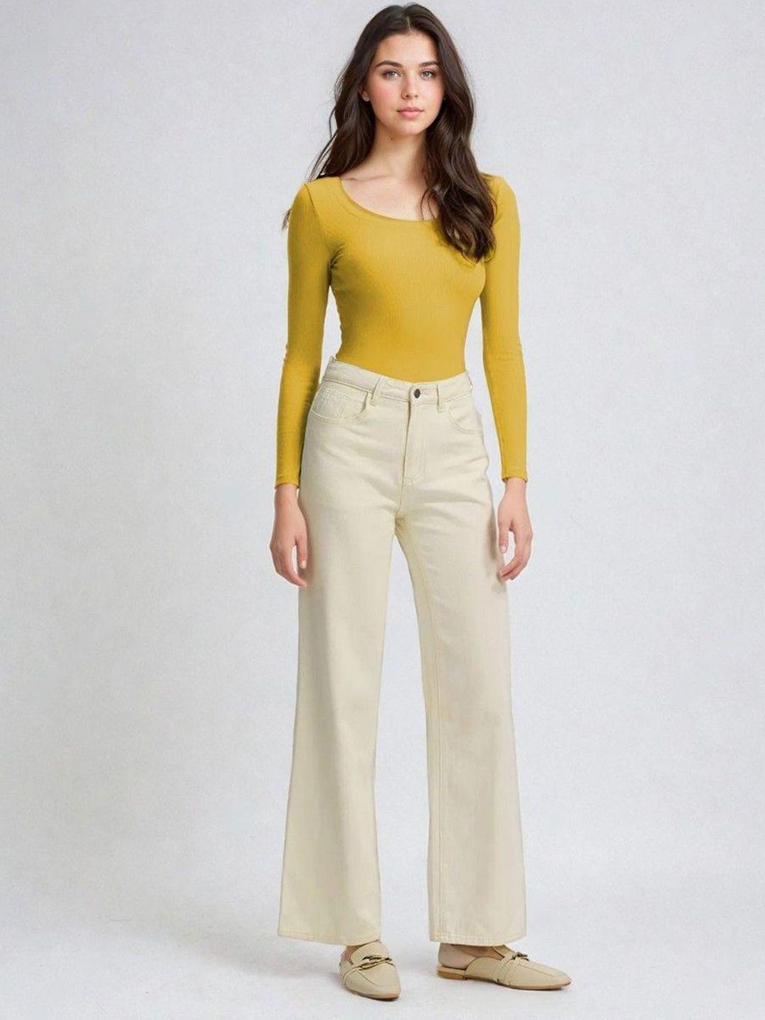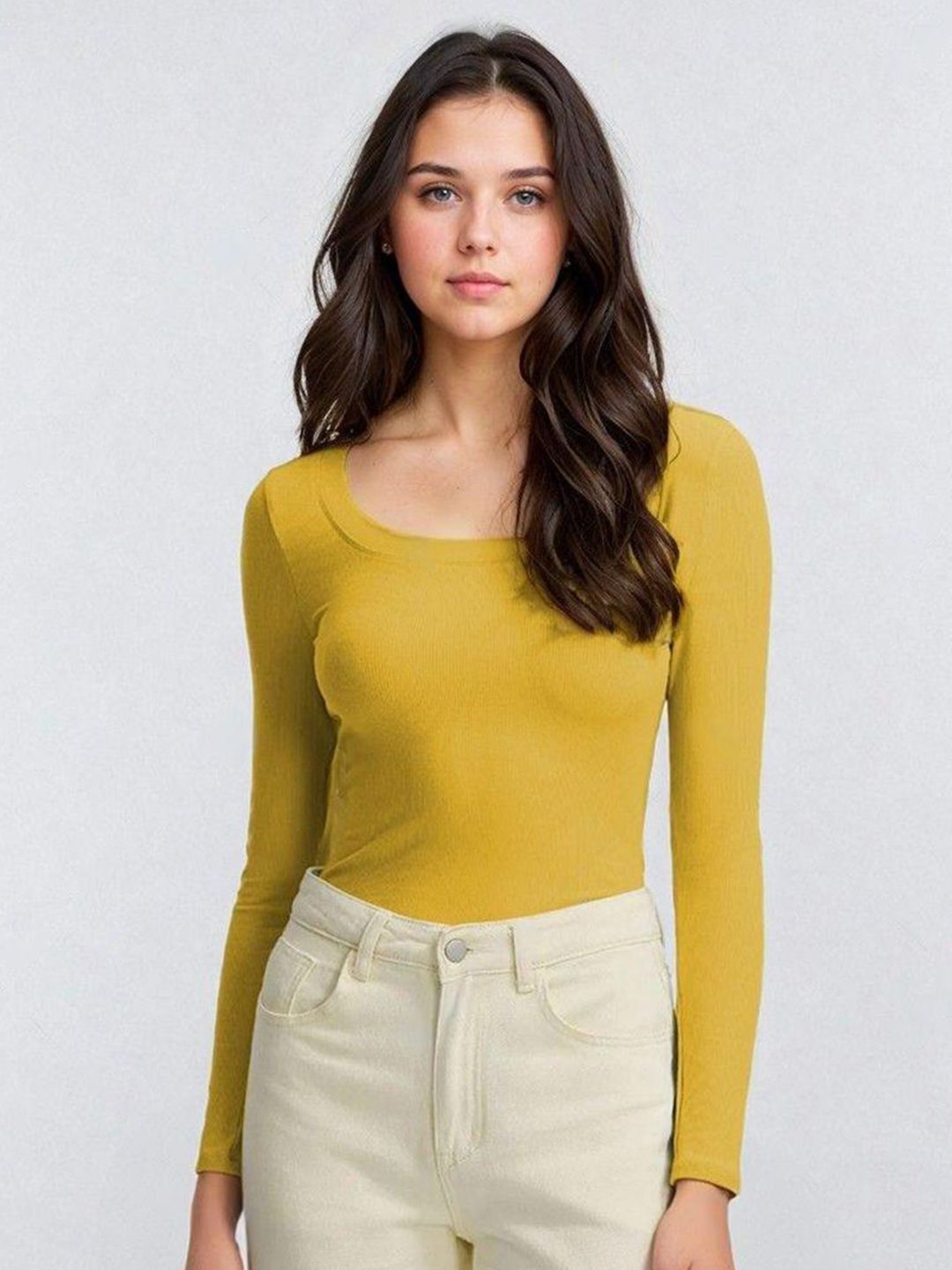 Kotty Women Scoop Neck Long Sleeves Fitted Top