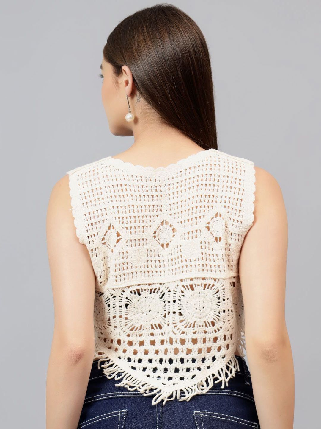 Enhance your wardrobe with our exquisite Women's Crochet Jacket, a perfect blend of elegance and comfort. Handcrafted with meticulous attention to detail, this jacket is designed to add a touch of bohemian charm to your outfits. Whether you're dressing up for a special occasion or adding a stylish layer to your casual ensemble, this crochet jacket is the ideal choice.